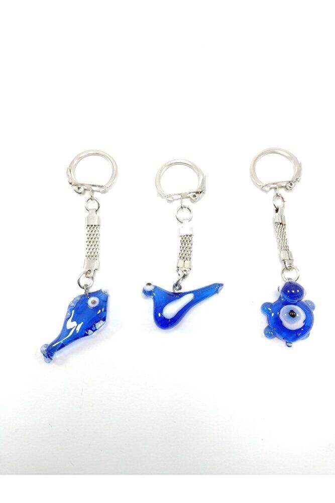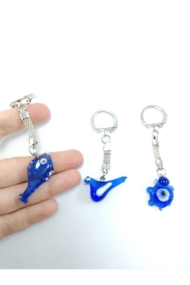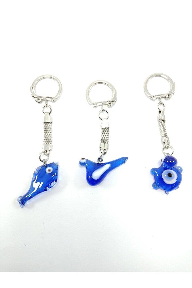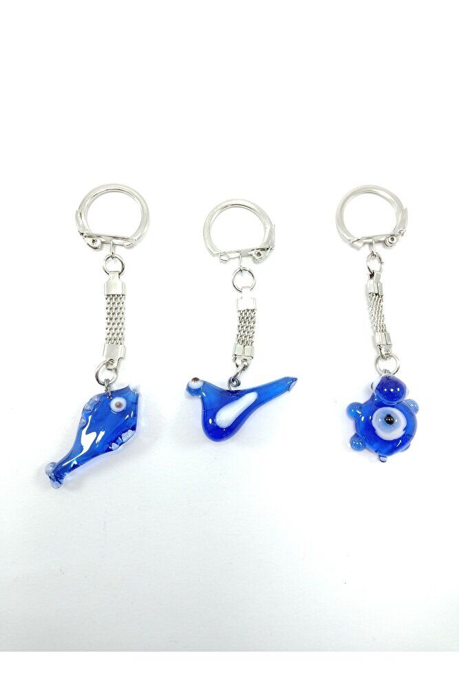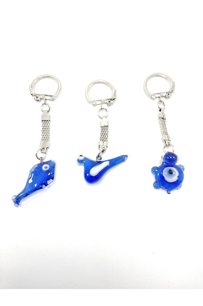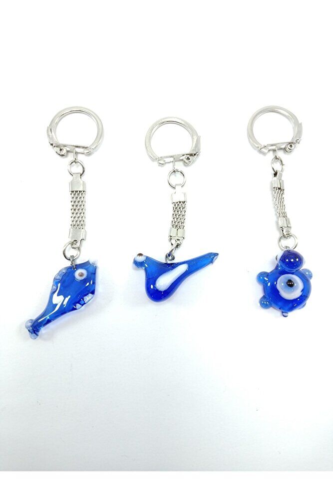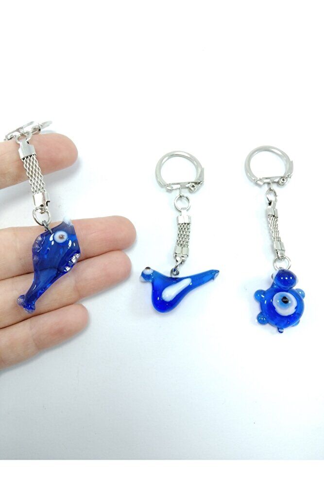 Cam Nazar Boncuğu Anahtarlık Üçlü Set El Yapımı Kuş + Balık + Kaplumbağa Üçlü Hediyelik Aksesuar