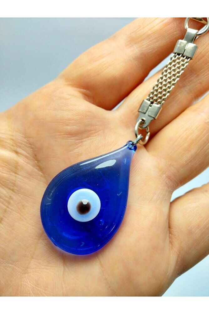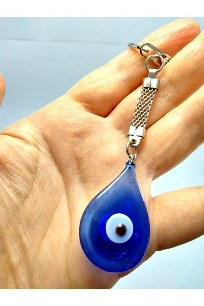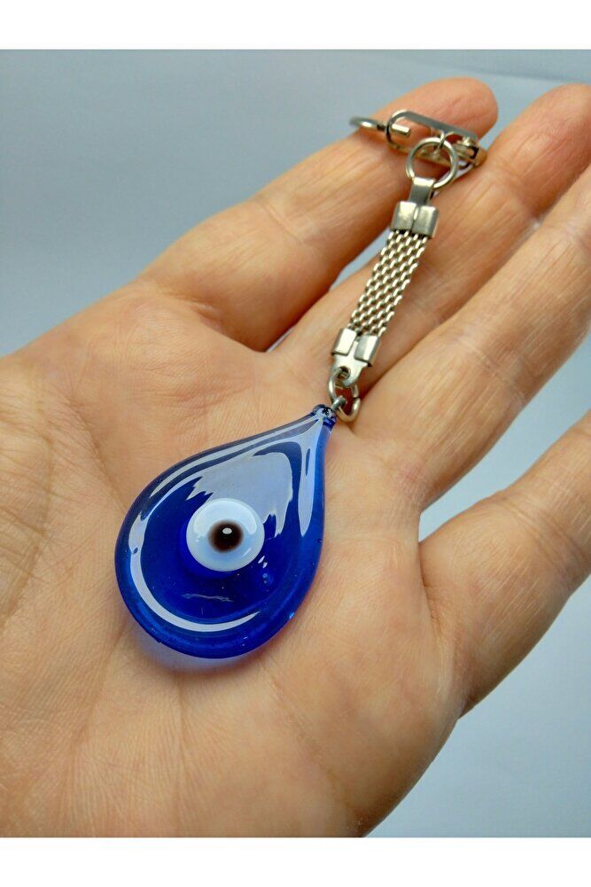 - El yapımı cam nazar boncuğu, benzersiz ve otantik bir tasarıma sahiptir; - Damla şeklindeki nazar boncuğu, klasik ve zamansız bir görünüm sunar; - Hediyelik olarak tercih edilebilecek bu anahtarlık, sevdiklerinize özel bir dokunuş katar; - Cam malzemesi sayesinde dayanıklı ve uzun ömürlü kullanım sağlar;