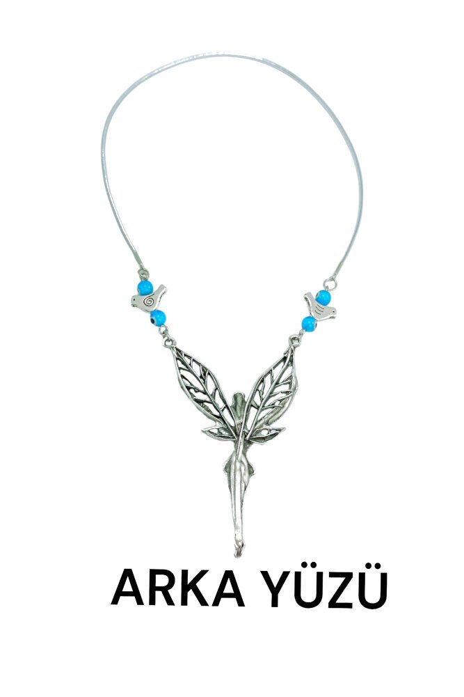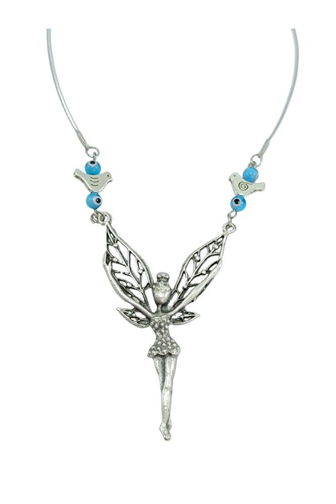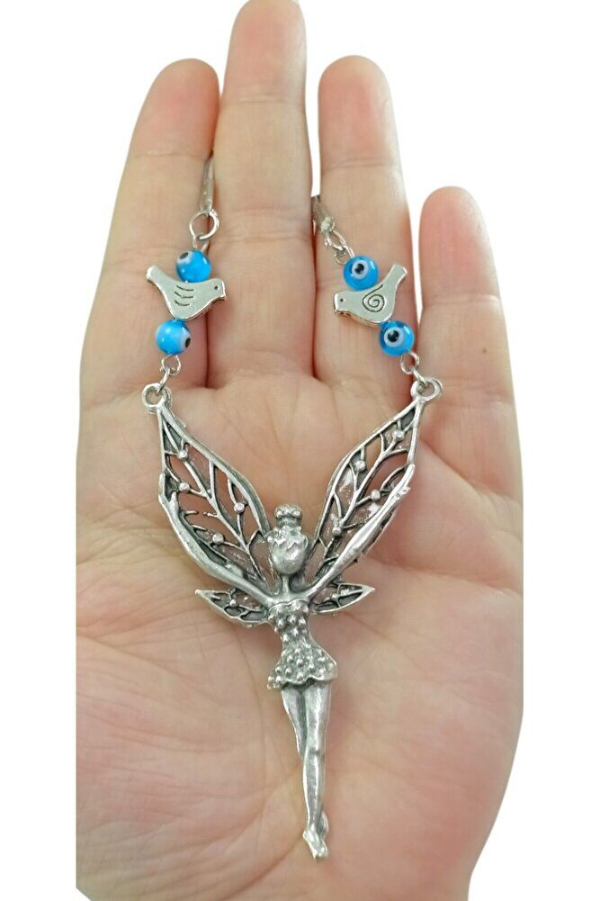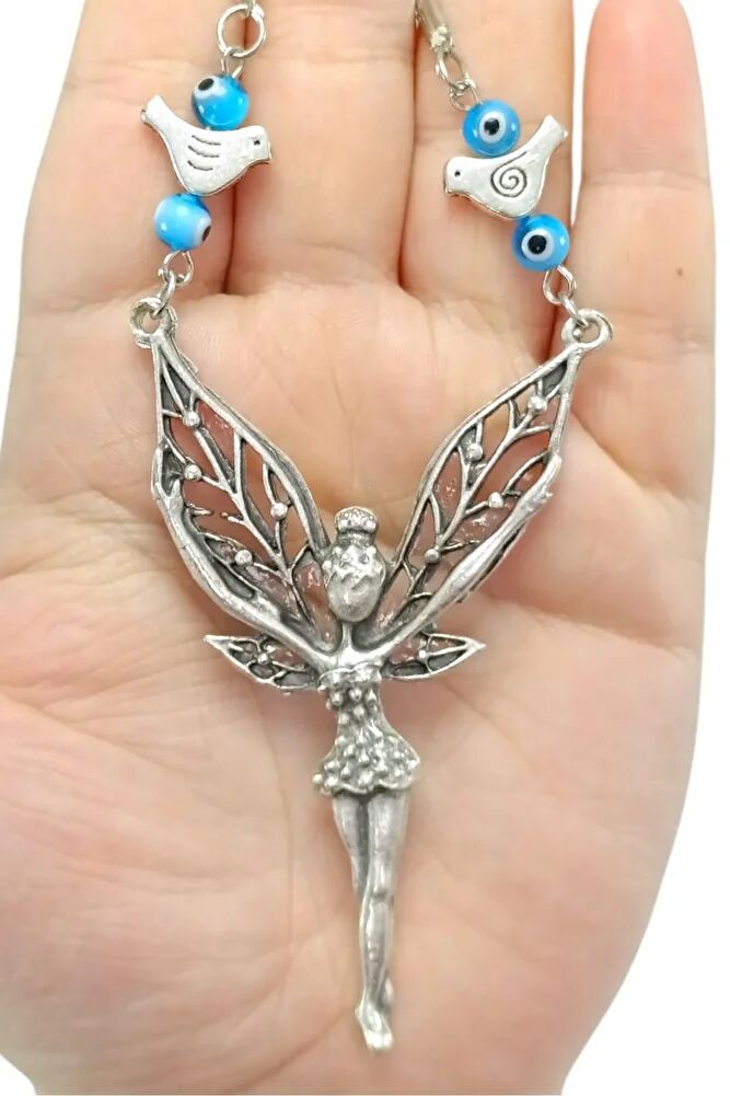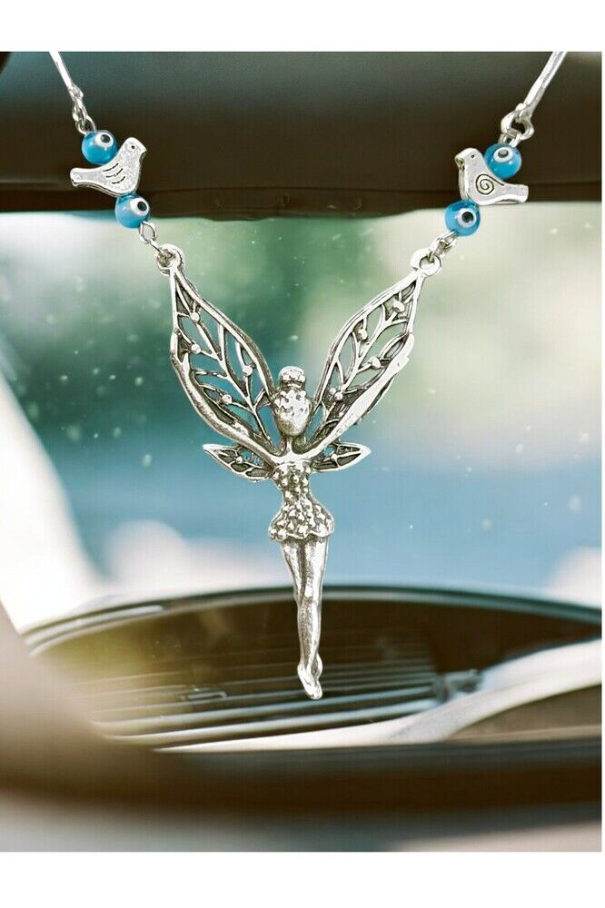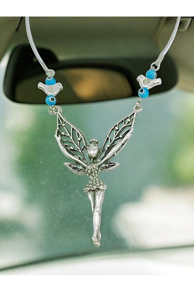 Cam Nazar Boncuğu Detaylı Metal Kanatlı Melek Araba Dikiz Ayna Süsü/Kuşlu Yeni Araba Hediyesi