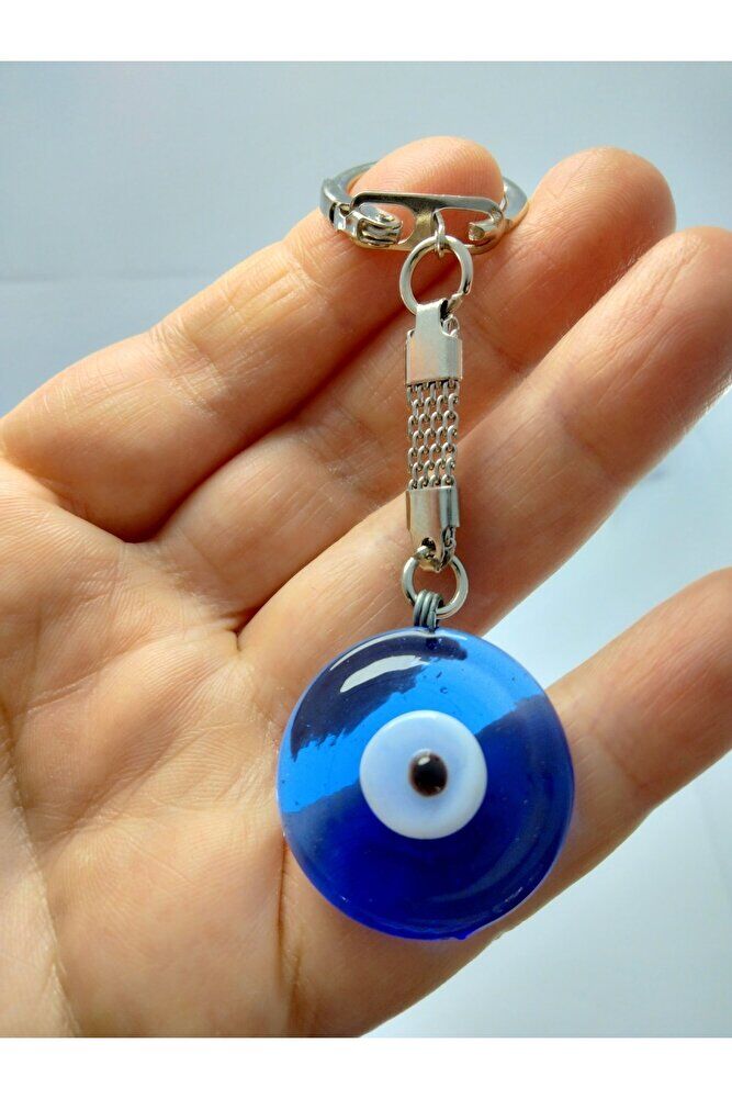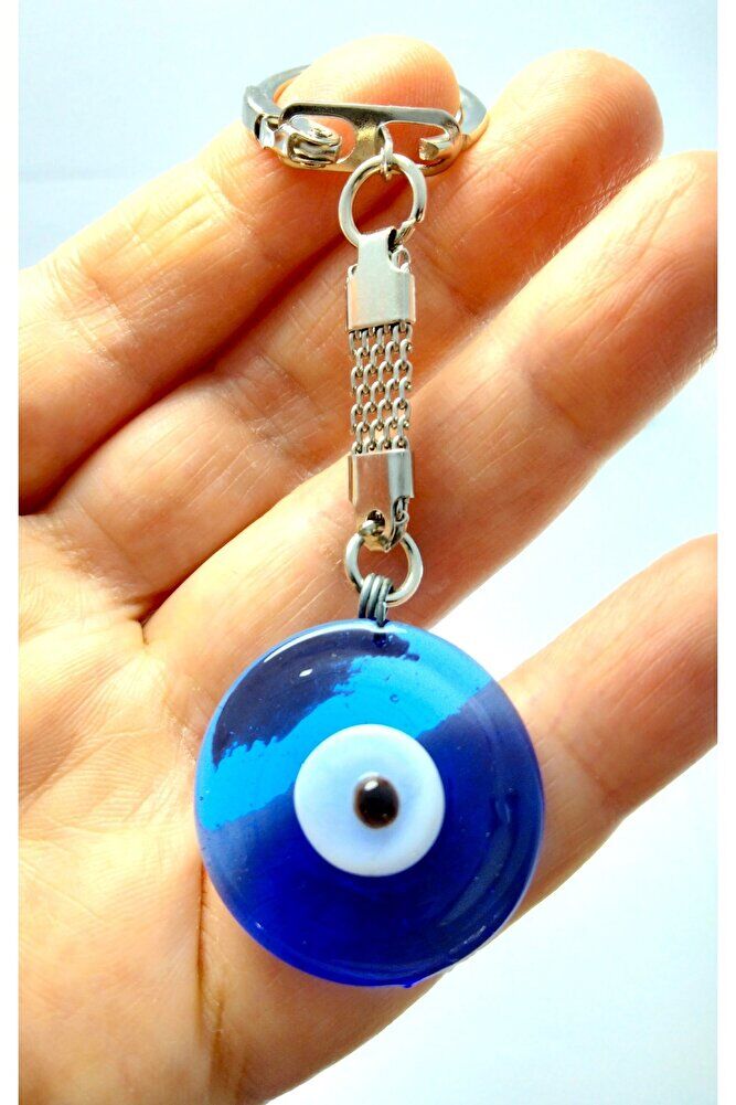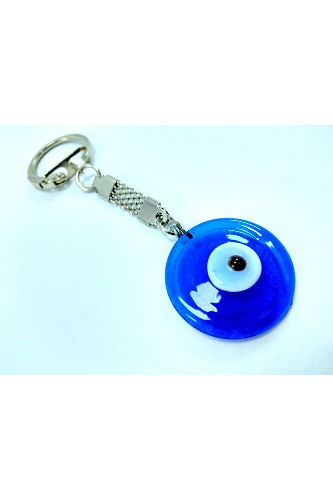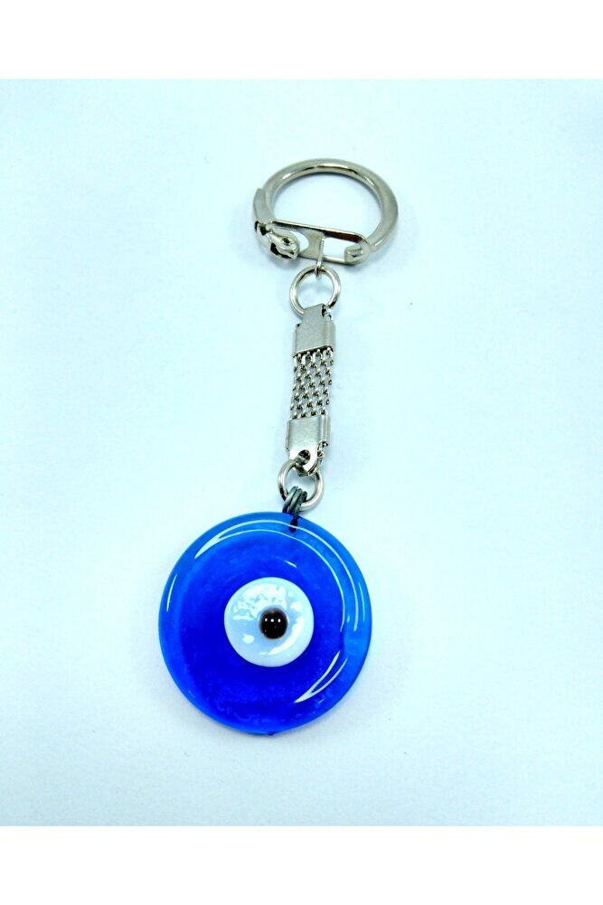 Cam Nazar Boncuğu Sade Yuvarlak Anahtarlık El Yapımı Hediyelik Aksesuar