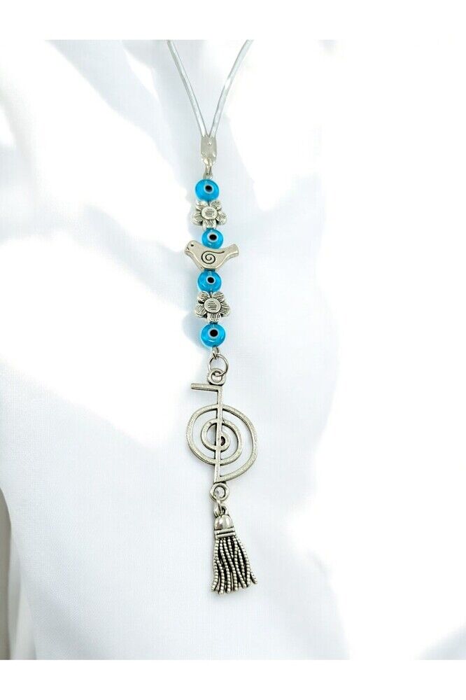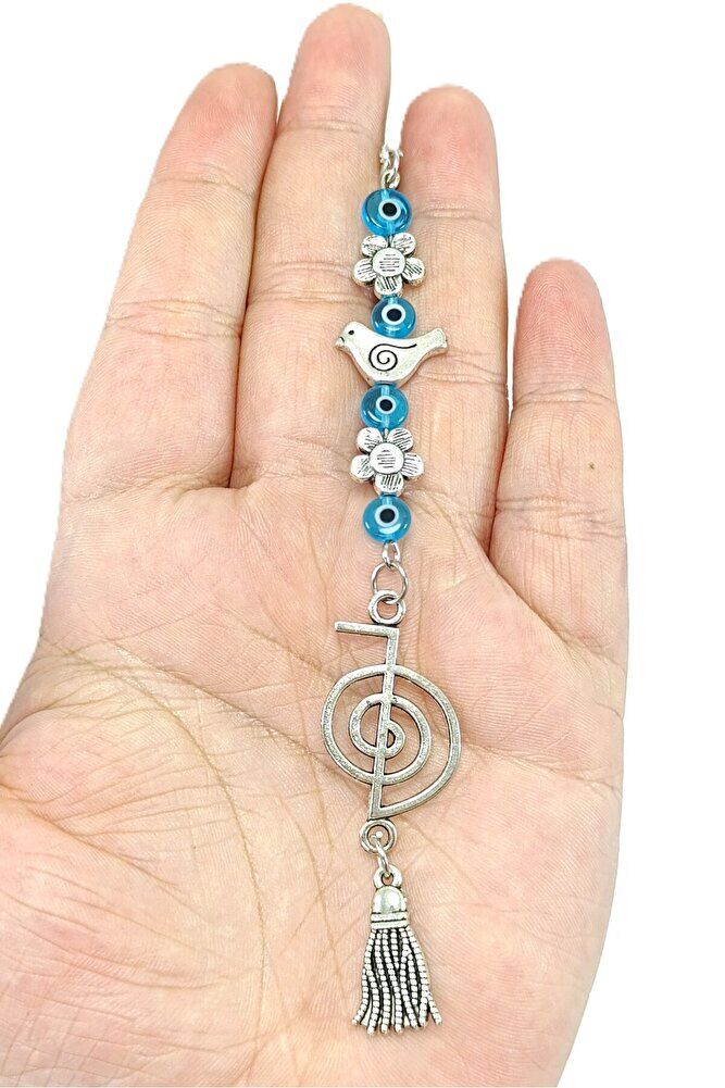 Ürün el yapımıdır.; El yapımı olduğu için ufak farklılık ve düzensizlikler olasıdır.; ; İlk görseldeki renkli kalpler dekor amaçlı konulmuştur.; Renkli kalpler dahil değildir.; ; Metalik ip elastiktir.; Elastik yapısı sayesinde her model araca rahatlıkla takılabilmektedir.; ; Püsküller metaldir.; ; Nazar boncukları el yapımı camdır.; Çift taraflıdır.; ; Kuş ve çiçekler metaldir çift taraflıdır.; ; Ürünün yapılı hali elastik ipi hariç 11 cm ölçülerindedir.; ; Reiki sembolleri evrensel enerjiye uyum sağlayan antenler olarak değerlendirilmektedir.; Enerji, piramit ya da spiral gibi bazı şekillerden ya da bu şekillerle rezonans kuran dalgadan türetilmektedir.; Sembolleri kullanarak şifaya ulaşma tekniği “sembolleştirilmiş şifa” olarak adlandırılmaktadır ;