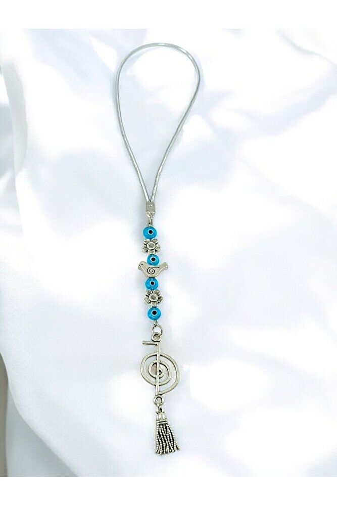 Cam Nazar Kuş ve Çiçek Detaylı Metal Reiki Sembolü Araba Dikiz Ayna Süsü/Püsküllü Araba Hediyesi