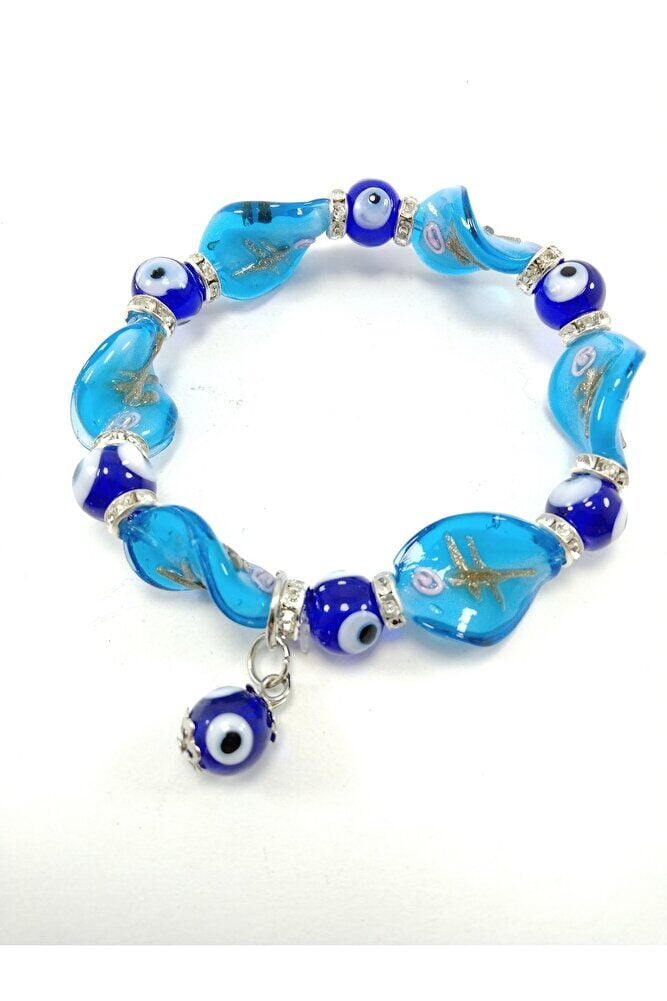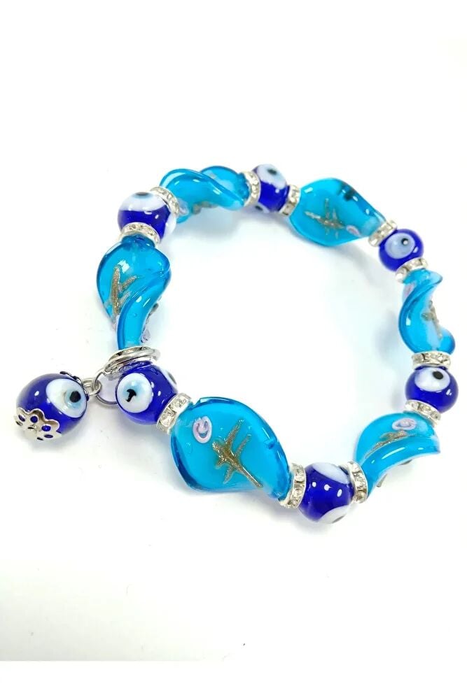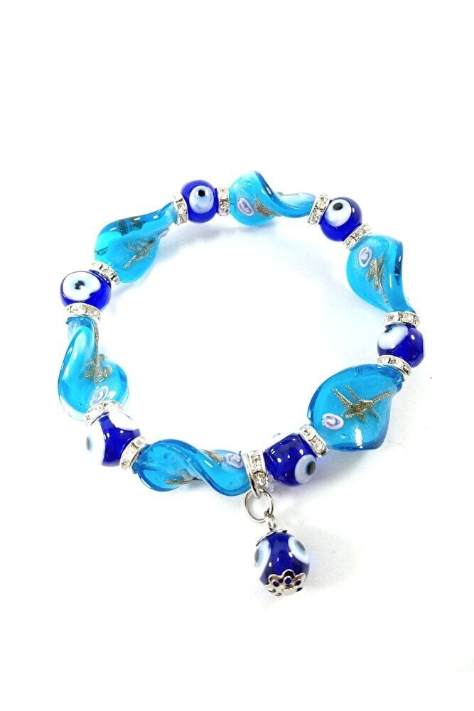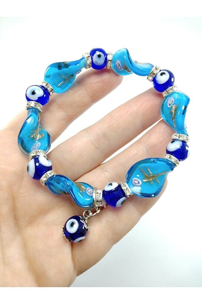 Cam Turkuaz Nazar Boncuğu Bileklik Özel Tasarım El Yapımı Hediyelik Aksesuar