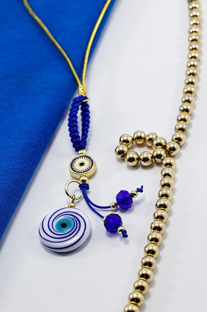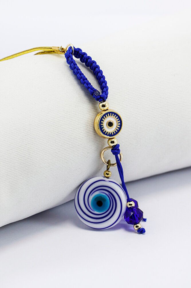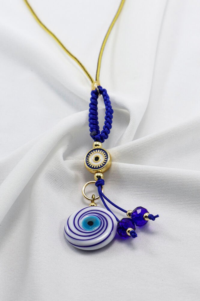 Çarkıfelek Beyaz Nazar Boncuklu Özel Tasarım Elastik İpli Dikiz Ayna Süsü, Yeni Araba Hediyesi