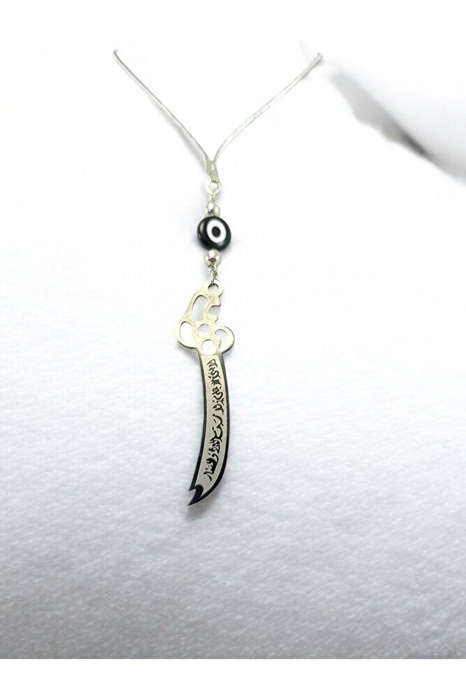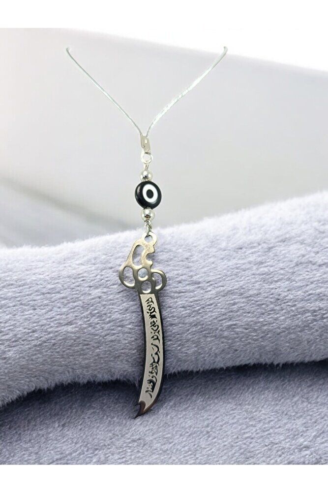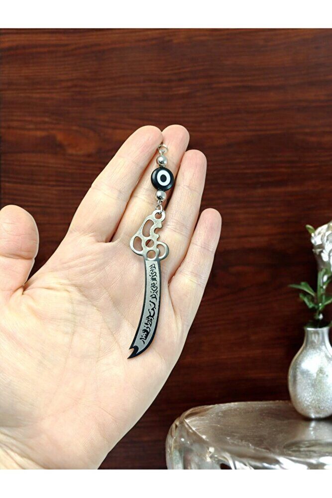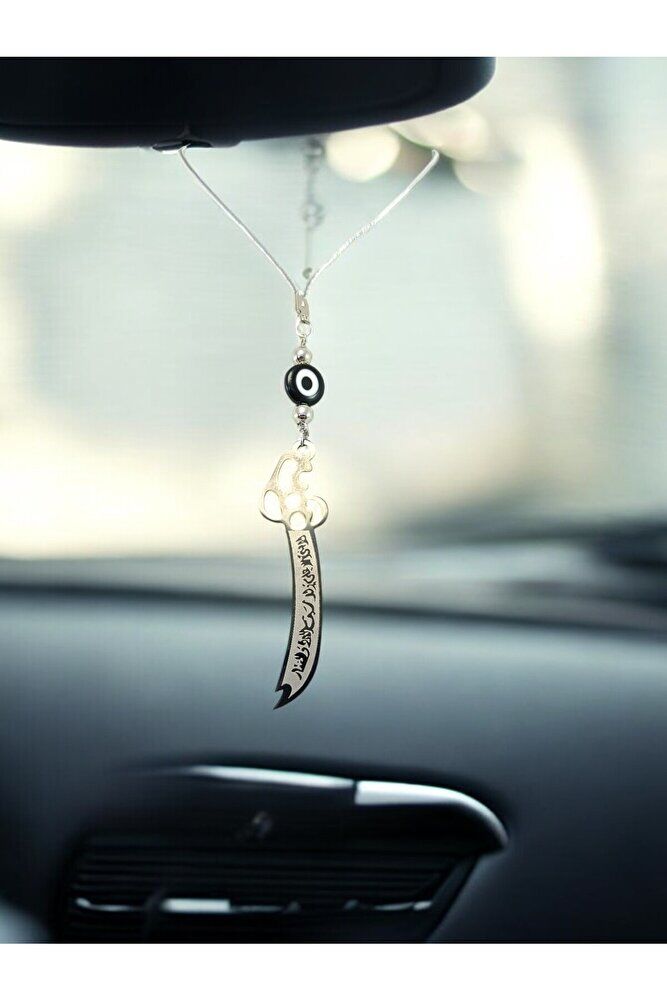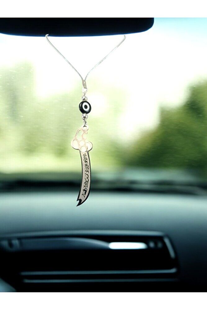 Çelik Zülfikar Kılıç Araba Dikiz Ayna Süsü, El Yapımı Cam Siyah Nazar Boncuğu Yeni Araba Hediyesi