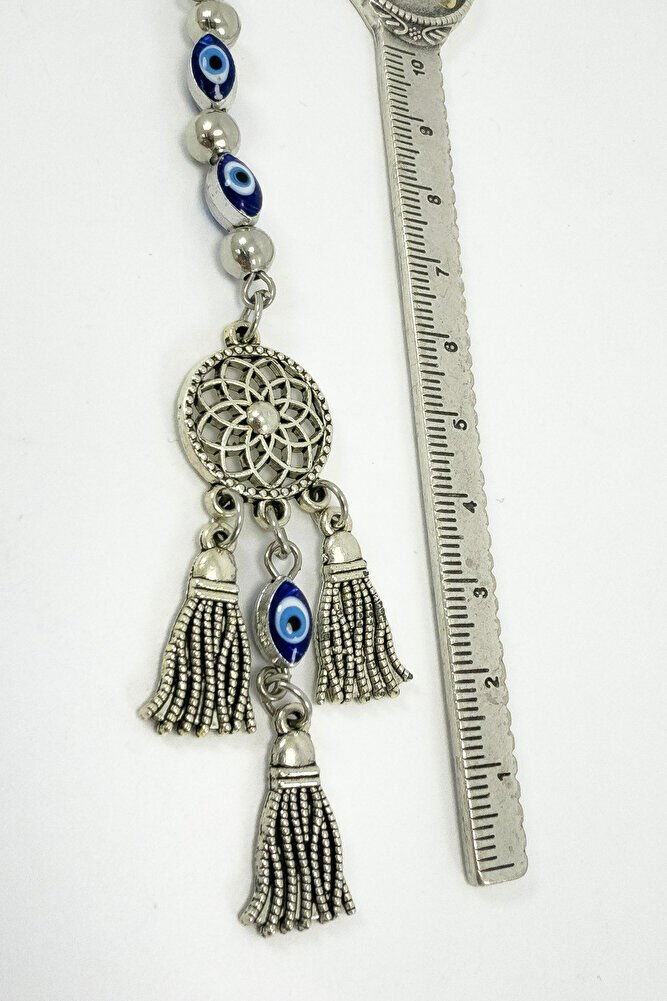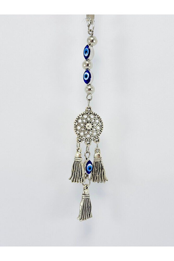 Ürün el yapımıdır.; el yapımı olduğu için ufak farklılık ve düzensizlikler olasıdır.; İpi lastiklidir.; Lastikli olduğu için her model araca rahatlıkla takılabilmektedir.; Çerçeveli nazar boncuğu çift taraflıdır.; Ürün metaldir.; Lotus çiçeği tek taraflıdır.; Püsküller metaldir ve çift taraflıdır.; Ürün gümüş renklidir.;