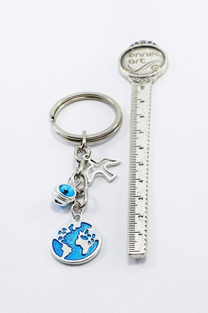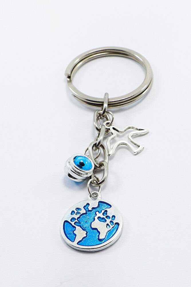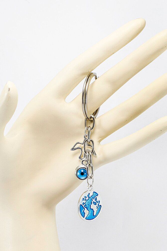 Çerçeveli Nazar Boncuklu Kuş Figürlü Mineli Dünya Anahtarlık, Hediyelik Anahtarlık