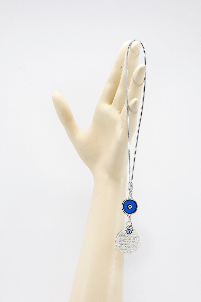 Çerçeveli Nazar Boncuklu Metal Ayetel Kürsi Araba Dikiz Ayna Süsü, Yeni Araba Hediyesi