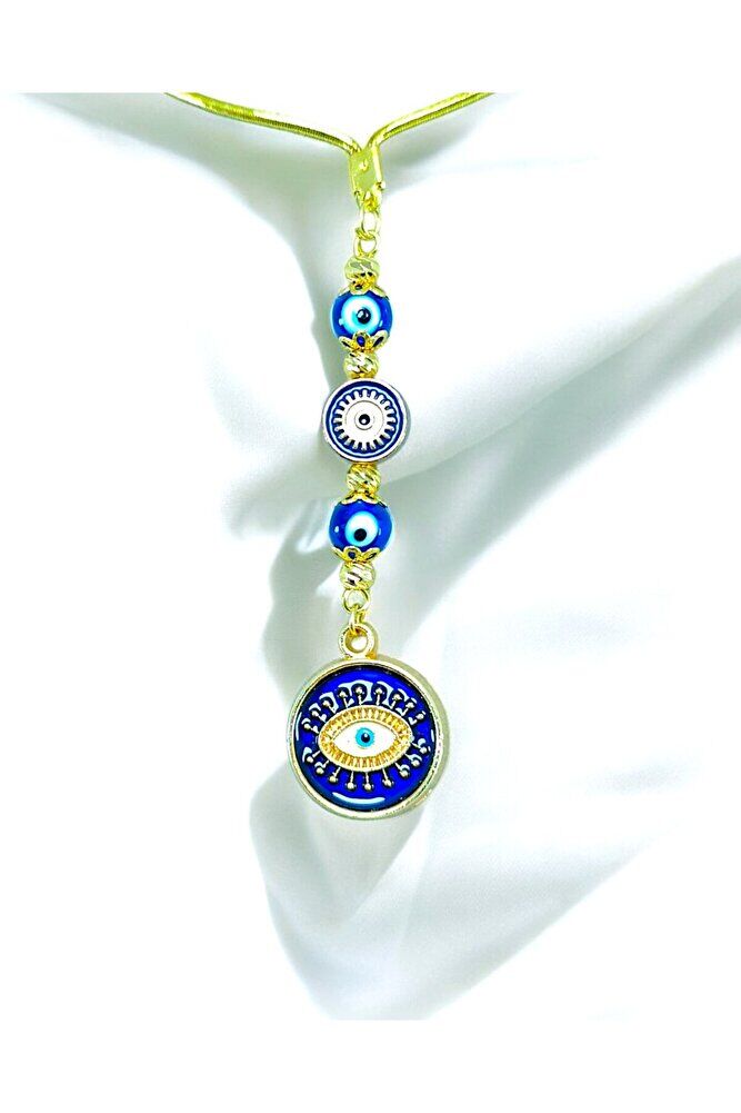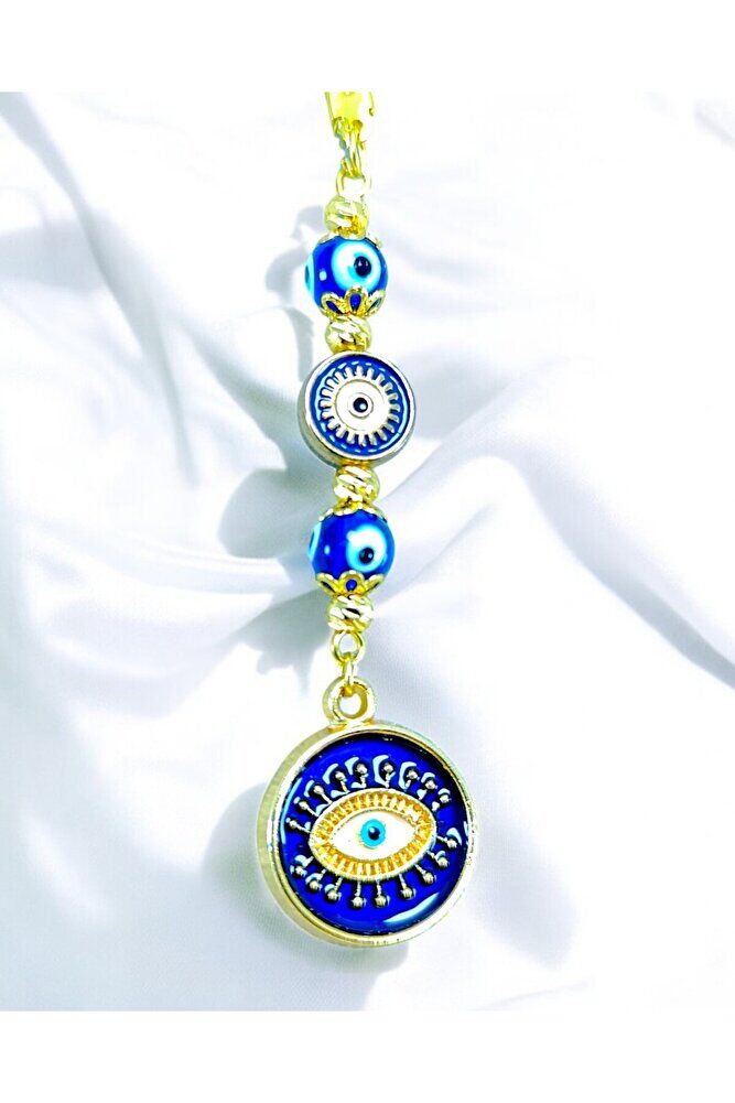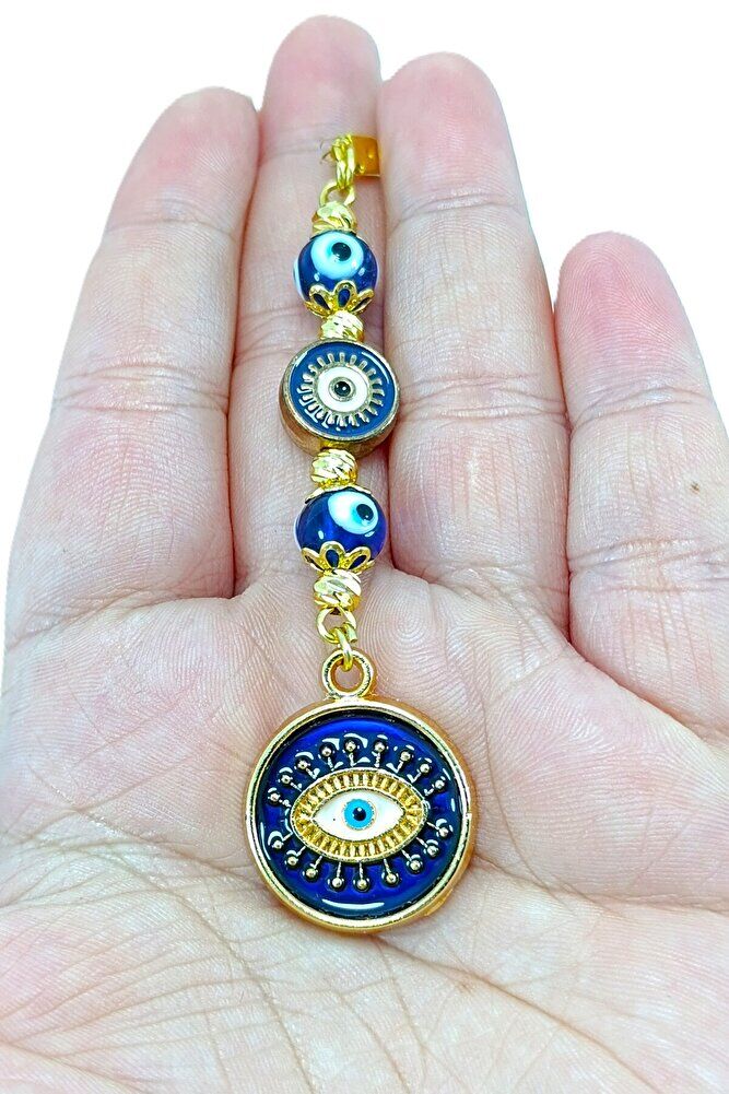 Çoklu El Yapımı Cam Nazar Boncuklu Lacivert Mineli Göz Figürü Dikiz Ayna Süsü, Yeni Araba Hediyesi