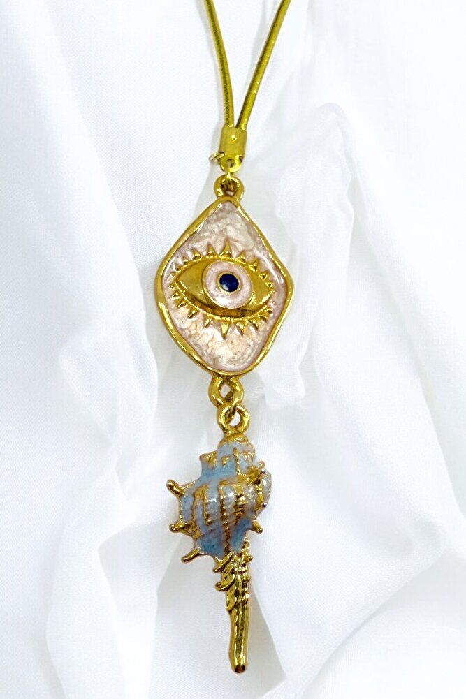 Deniz Kabuğu Püskül Detaylı Pembe Göz Figürü Dikiz Ayna Süsü, Tarz Yeni Araba Hediyesi