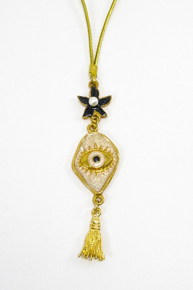 Ürün el yapımıdır.; el yapımı olduğu için ufak farklılık ve düzensizlikler olasıdır.; İpi lastiklidir.; Lastikli olduğu için her model araca rahatlıkla takılabilmektedir.; Deniz yıldızı tek taraflıdır ve metaldir.; Göz figürü tek taraflıdır.; Püskül metaldir.;