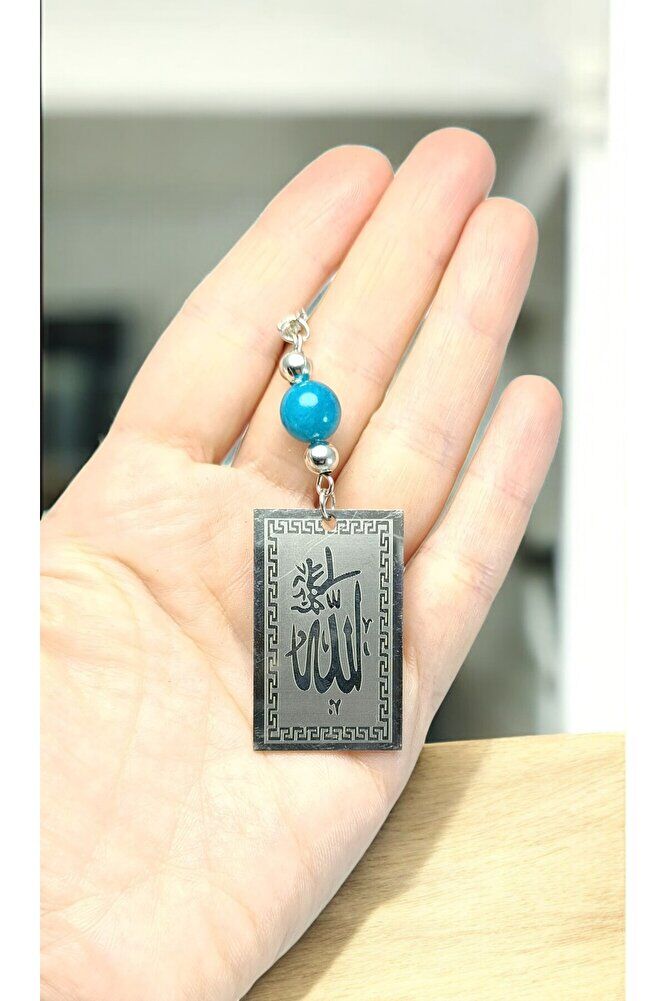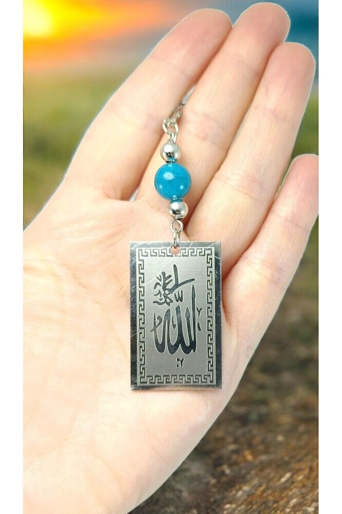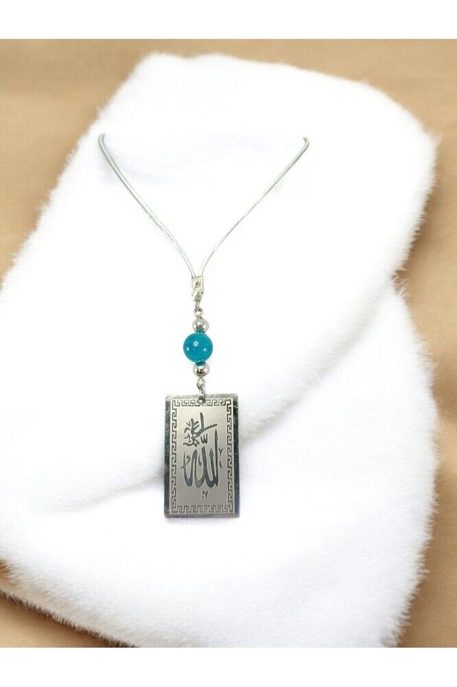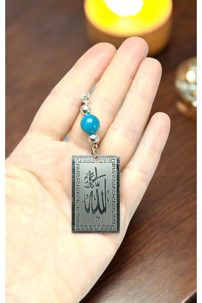 Dikdörtgen Çelik Allah Lafzı Araba Dikiz Ayna Süsü, Turkuaz Doğal Taşlı Yeni Araba Hediyesi