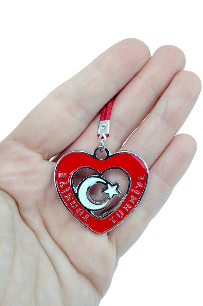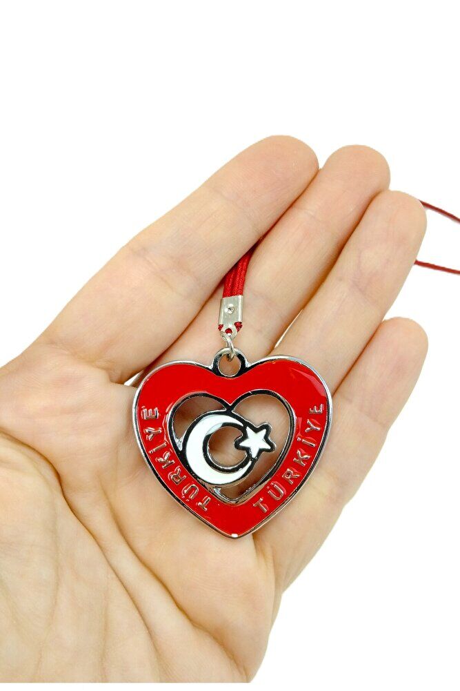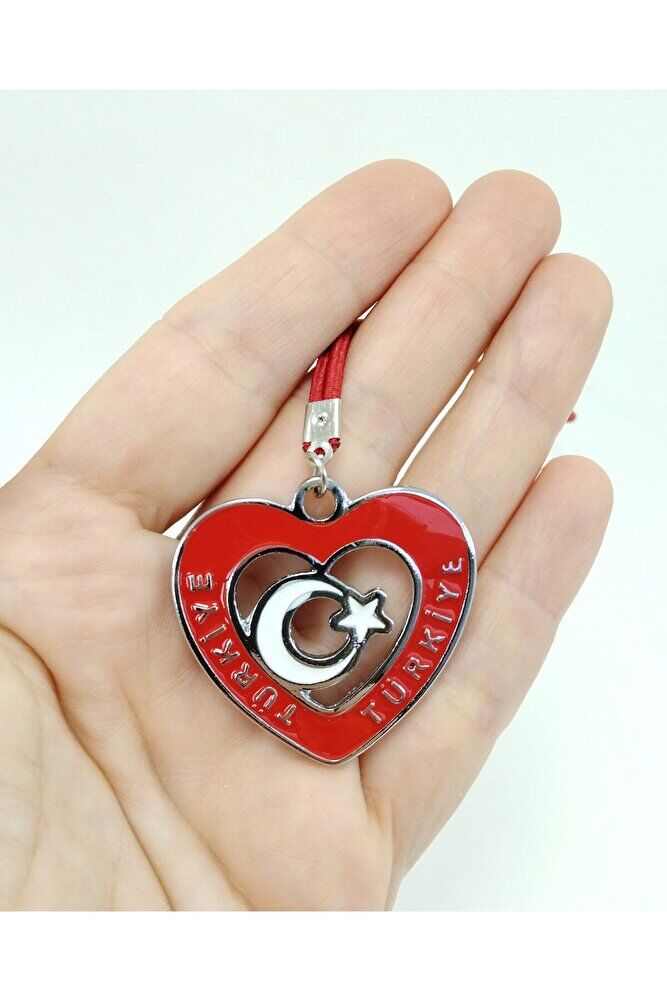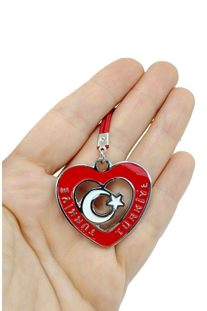 Dikiz Ayna Süsü, Metal Kırmızı Kalp Ay Yıldız Türkiye Araba Dekoru Hediyelik, Yeni Araba Hediyesi