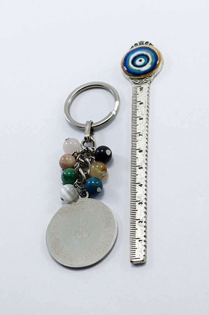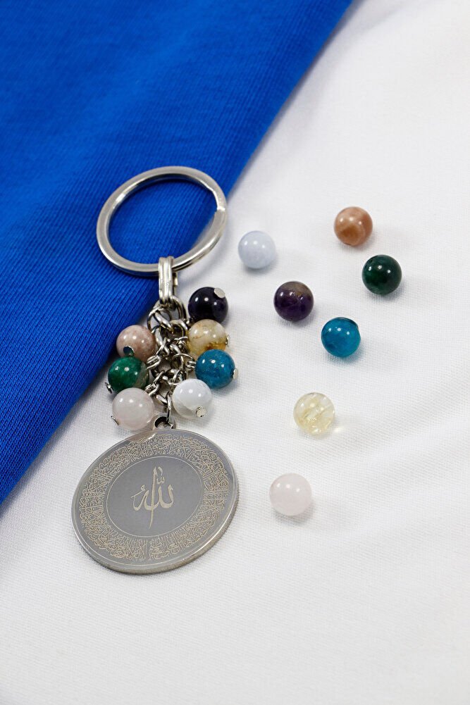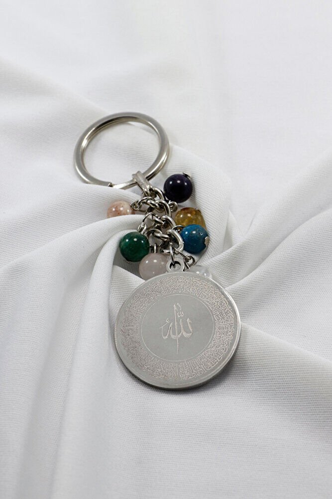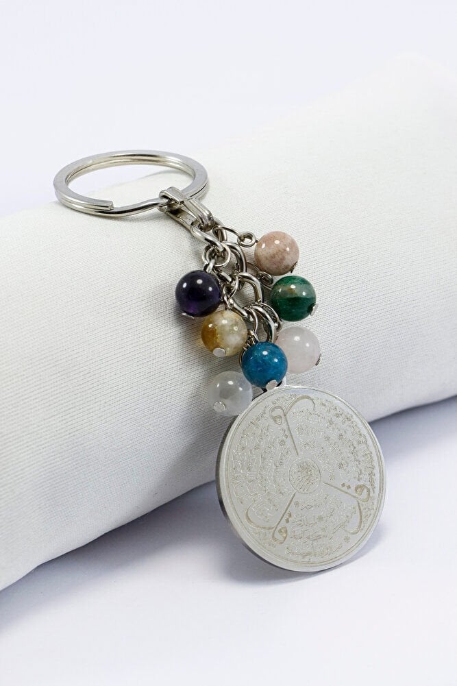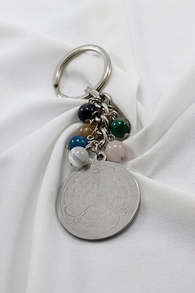 Doğal Taş Yedi Çakra Çelik Plaka Ayet'el Kürsi Felak Nas İhlas Anahtarlık