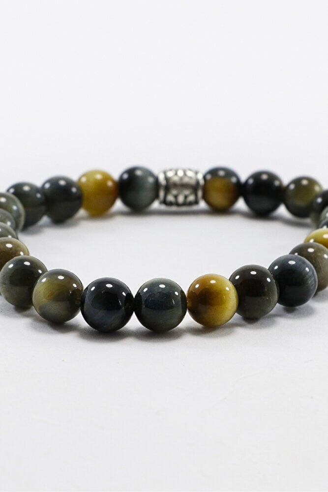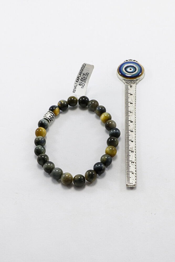 Kaplan Gözü doğal taşıyla hazırlanmış bu lastikli bileklik, zarafeti ve güçlü anlamları bir araya getiriyor.; Kaplan Gözü taşı; odaklanmayı artırdığı, negatif enerjiyi uzaklaştırdığı ve kişiye cesaret verdiği düşünülen özel bir taştır.; Günlük hayatta hem şık bir aksesuar olarak kullanılabilir hem de taşıdığı anlamlarla manevi bir destek hissi verebilir.; Lastikli yapısı sayesinde her bileğe kolayca uyum sağlar.; Tamamen doğal taşlarla üretildiği için her taşın rengi ve dokusu kendine özgüdür; bu nedenle ürünlerde ufak farklılıklar olabilir.; Görsel temsili olup, sevdiklerinize anlamlı bir hediye alternatifi sunar.