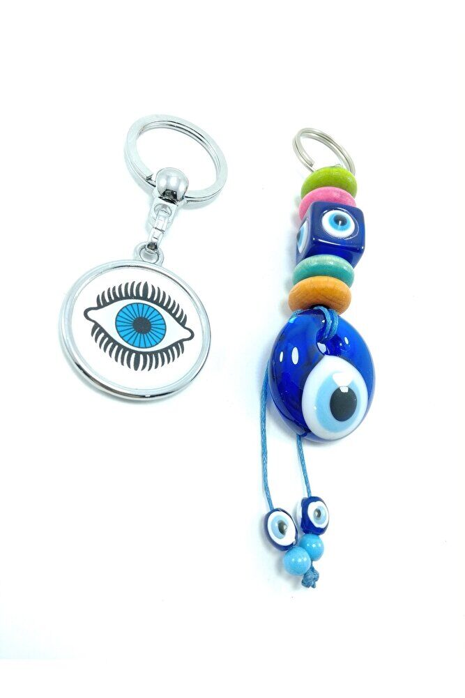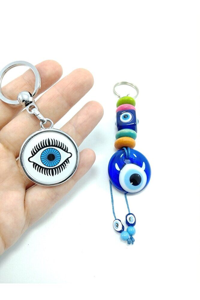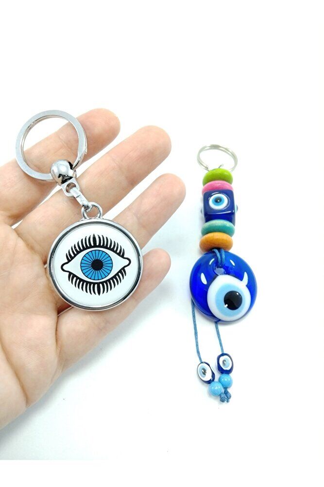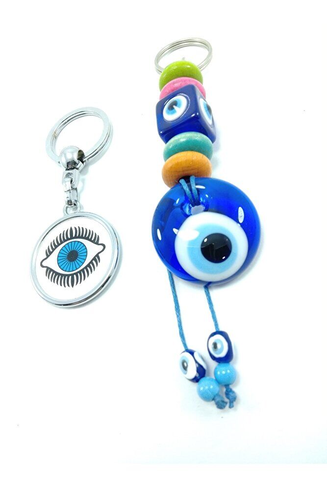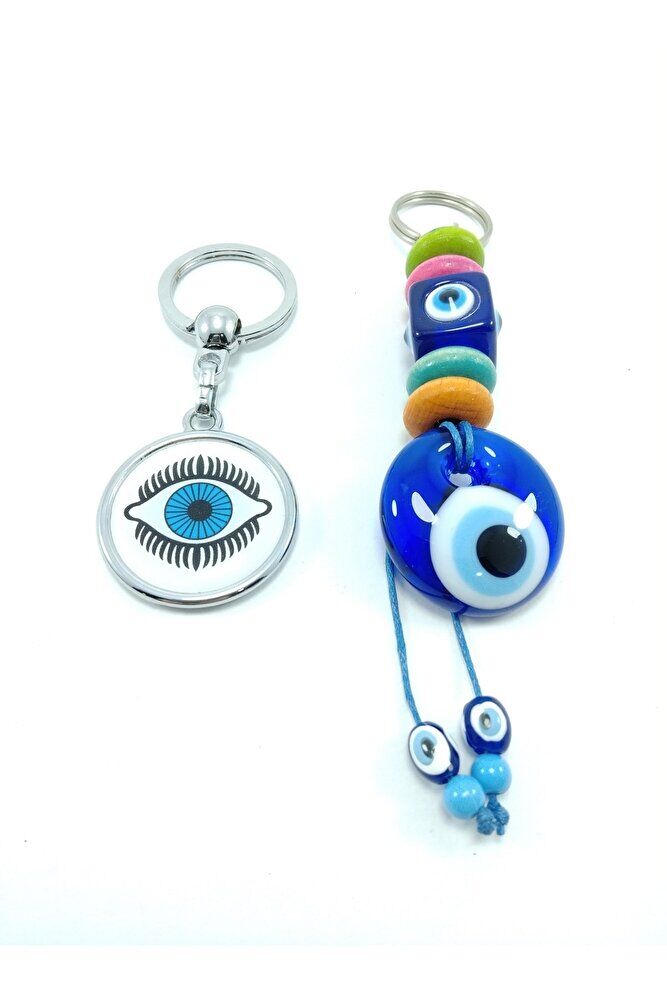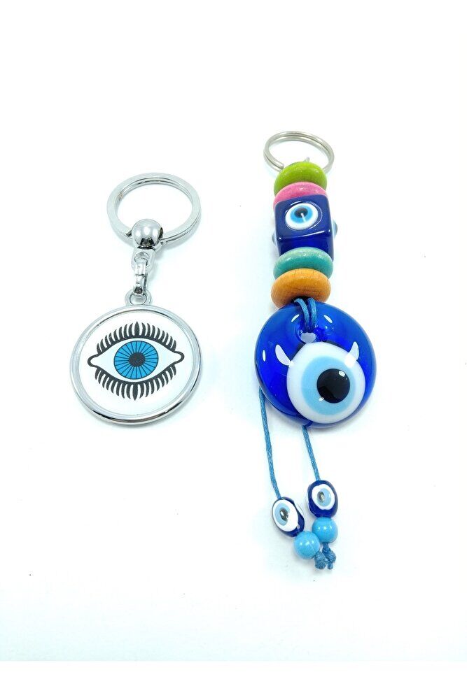 El Yapımı Cam Nazar Boncuğu Anahtarlık Metal Anahtarlık Hediyelik Ikili Set