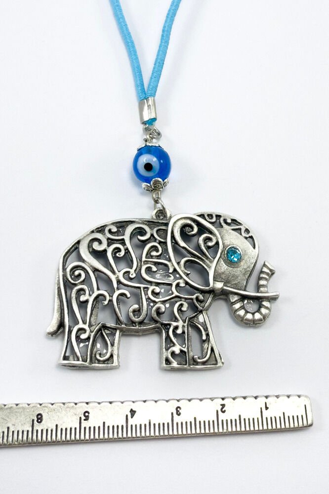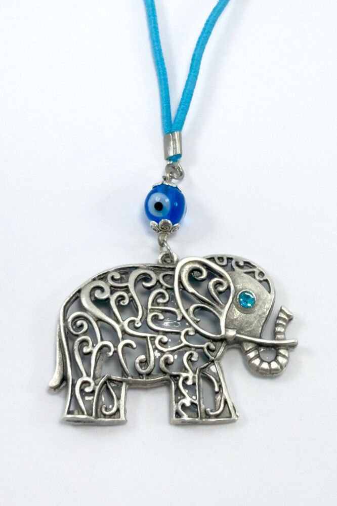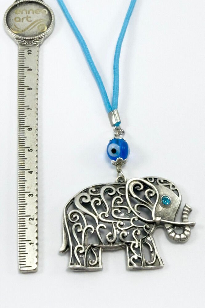 Ürün el yapımıdır.; El Yapımı olduğu için ufak farklılık ve değişiklikler olasıdır.; İpi lastiklidir.; Lastikli olduğu için her model araca rahatlıkla takılabilmektedir.; Cam nazar boncuğu el yapımıdır.; Fil metaldir tek taraflıdır.;