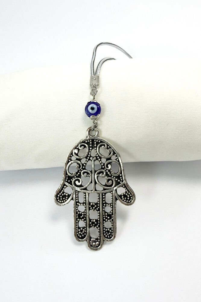 El Yapımı Cam Nazar Boncuklu Metal Hamse Araba Dikiz Ayna Süsü, Yeni Araba Hediyesi