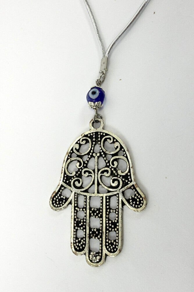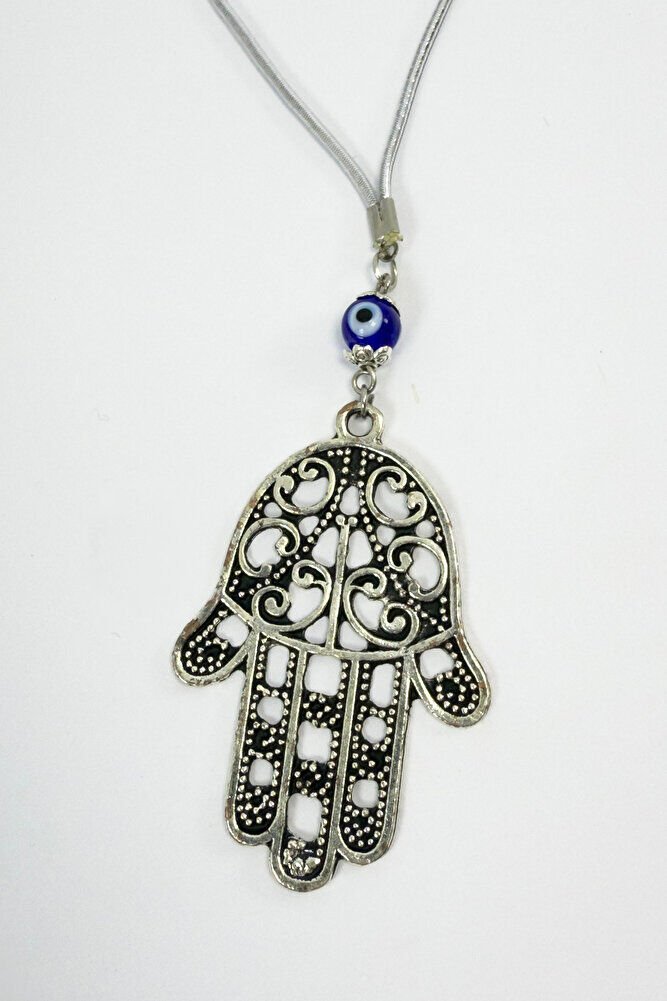 Ürün el yapımıdır.; el yapımı olduğu için ufak farklılık ve düzensizlikler olasıdır.; İpi lastiklidir.; Lastikli olduğu için her model araca rahatlıkla takılabilmektedir.; Hamse metaldir.; tek taraflıdır.; Nazar boncuğu el yapımı camdır.; Çift taraflıdır.;