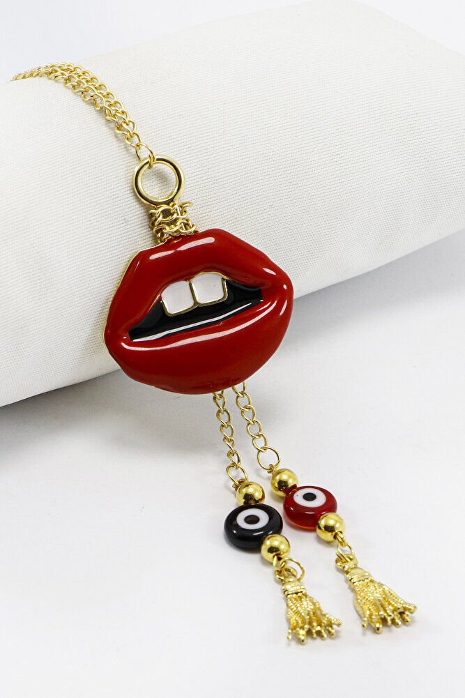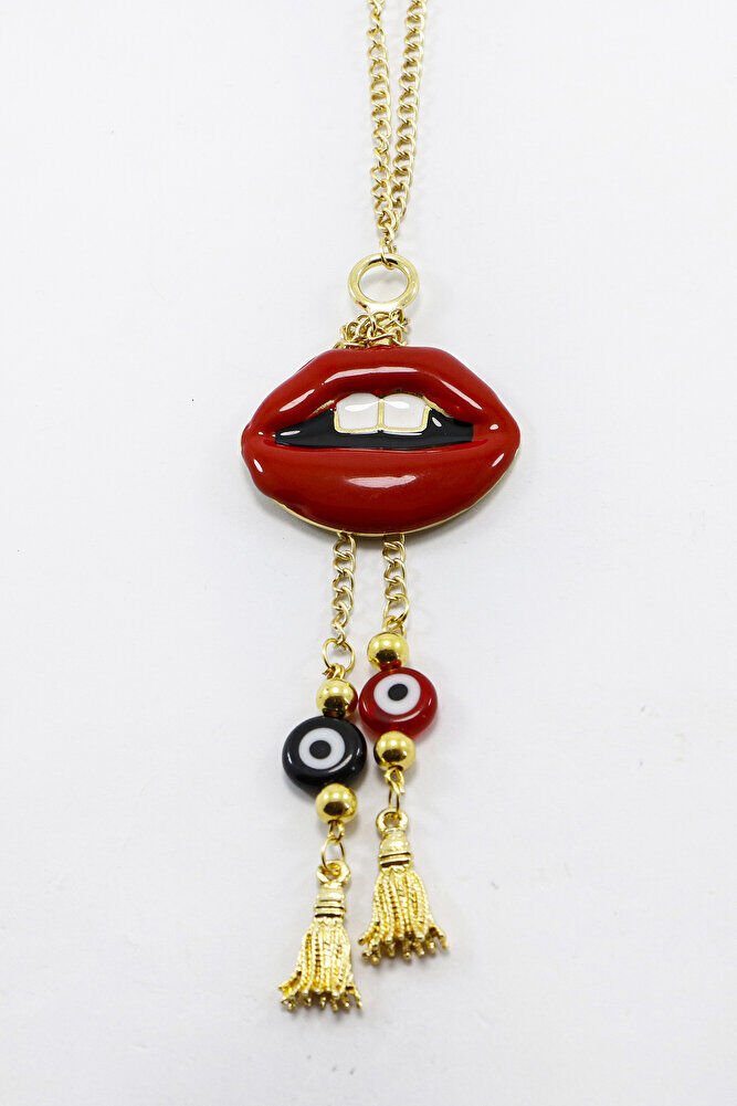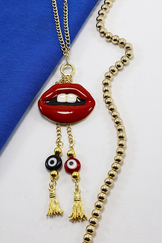 El Yapımı Cam Nazar Boncuklu Salkım Kırmızı Dudak Araba Dikiz Ayna Süsü, Yeni Araba Hediyesi
