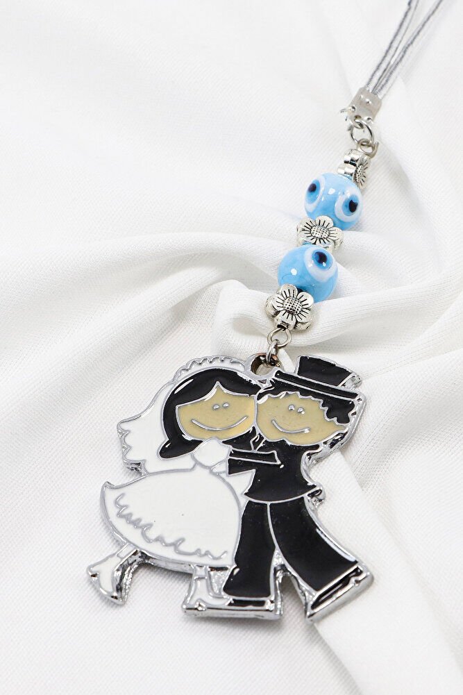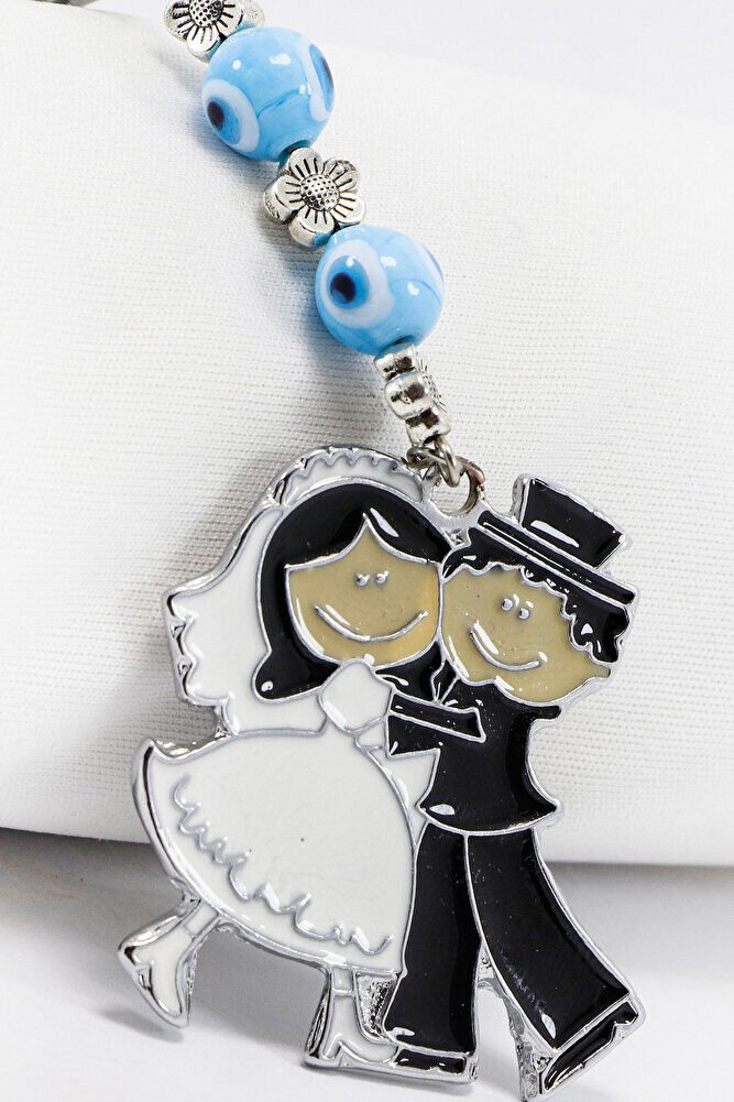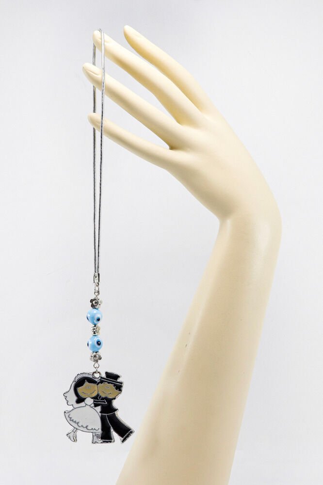 El Yapımı Cam Nazar Boncuklu Sarılan Gelin Damat Figürlü Araba Dikiz Ayna Süsü