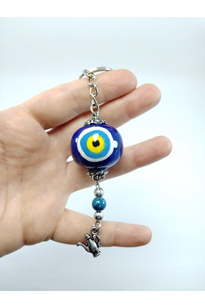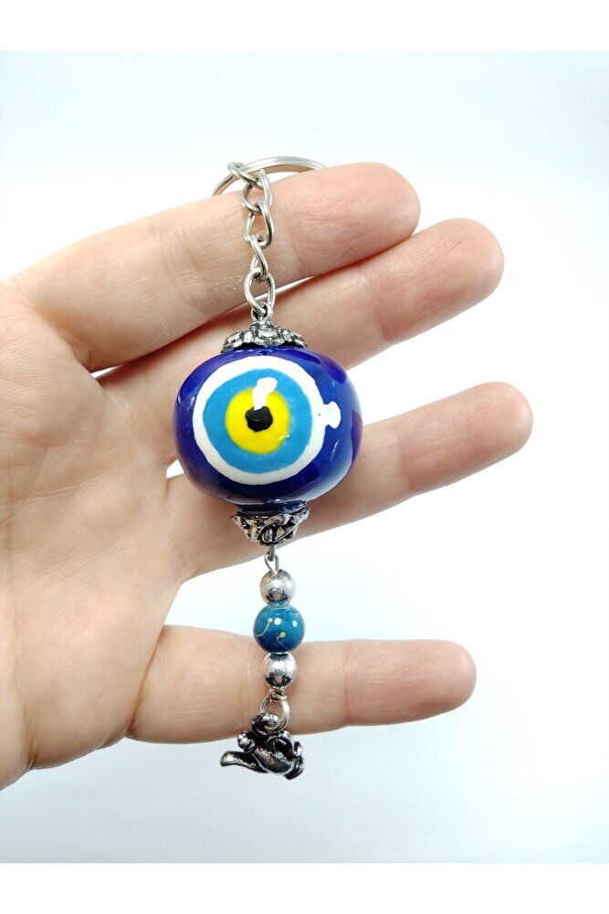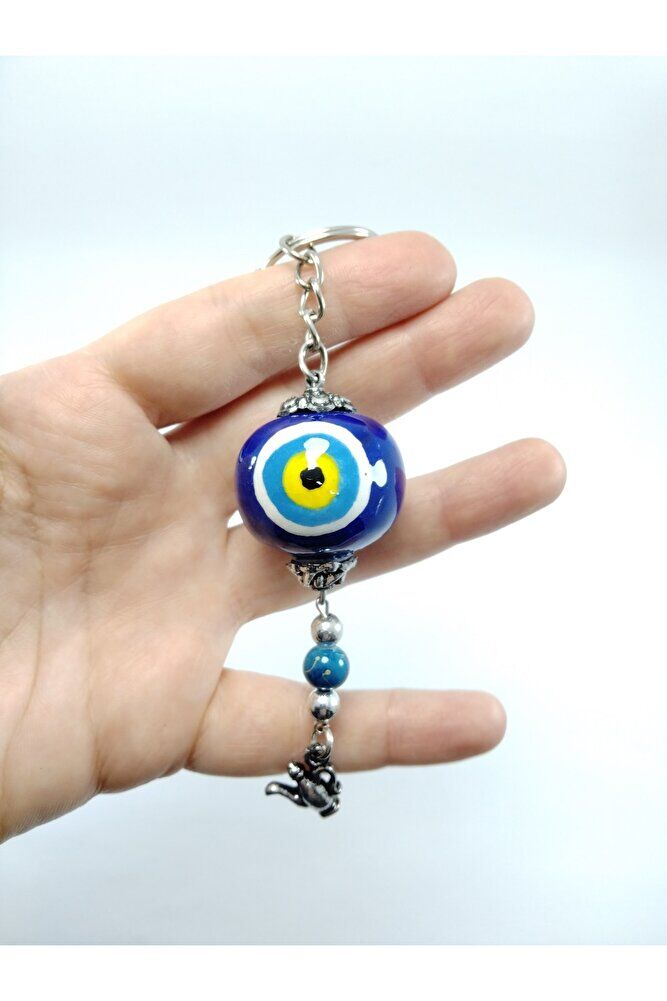 El Yapımı Cam Nazar Boncuklu Seramik Anahtarlık Hediyelik Eşya