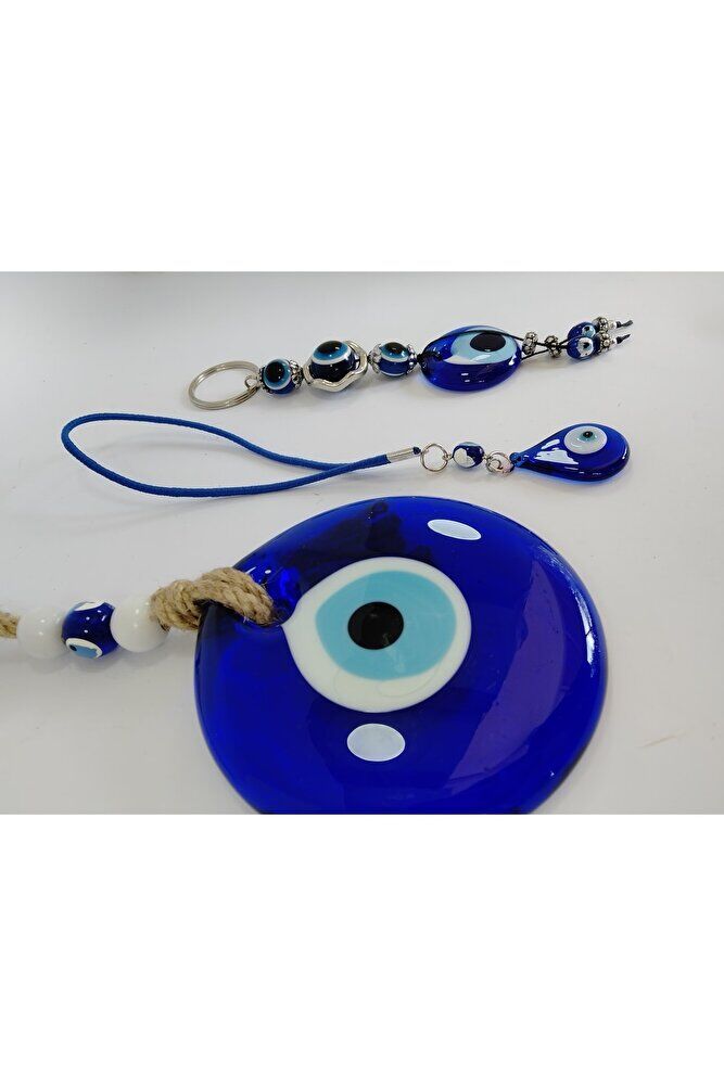 El yapımı cam nazarlık set, benzersiz ve özgün bir duvar dekorasyonu sunar; Cam materyali sayesinde şeffaf ve net bir görünüme sahip olup, ışığı yansıtarak odanızın atmosferini aydınlatır; Anahtarlık ve damla araba süsü ile tamamlanan bu set, hem işlevsel hem de estetik bir kullanım sağlar; Hediyelik olarak tercih edebileceğiniz bu set, sevdiklerinize anlamlı ve kişisel bir hediye alternatifi sunar;