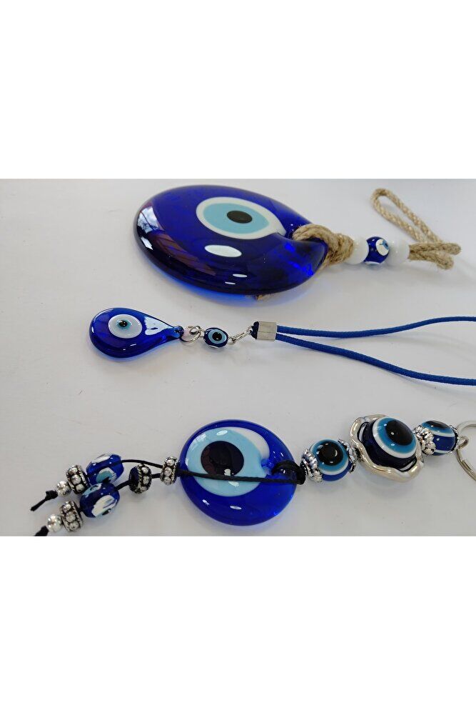El Yapımı Cam Nazarlık Set Duvar Dekoru Anahtarlık Damla Araba Süsü Hediyelik Set