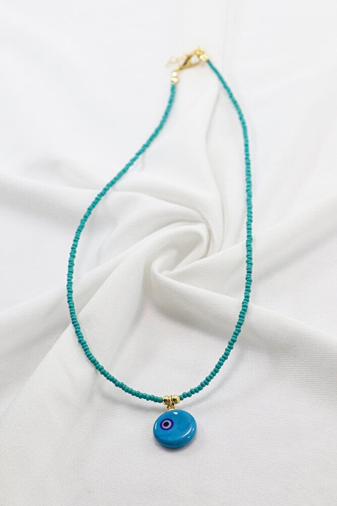 El Yapımı Cam Turkuaz Asimetrik Nazar Boncuğu Turkuaz Kum Boncuk Bijuteri Kolye