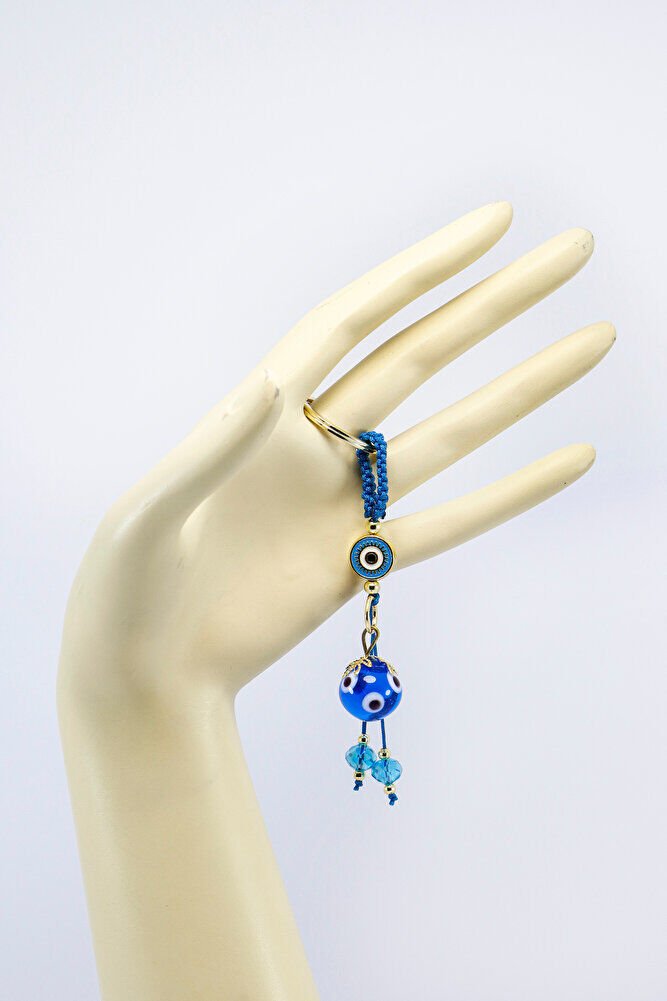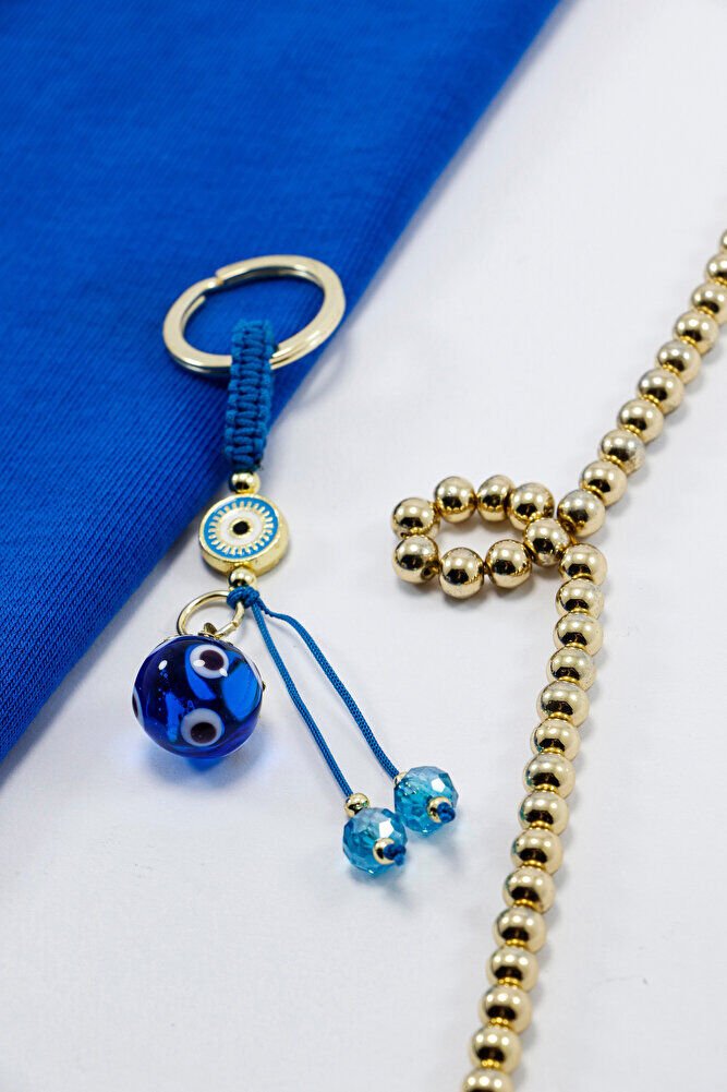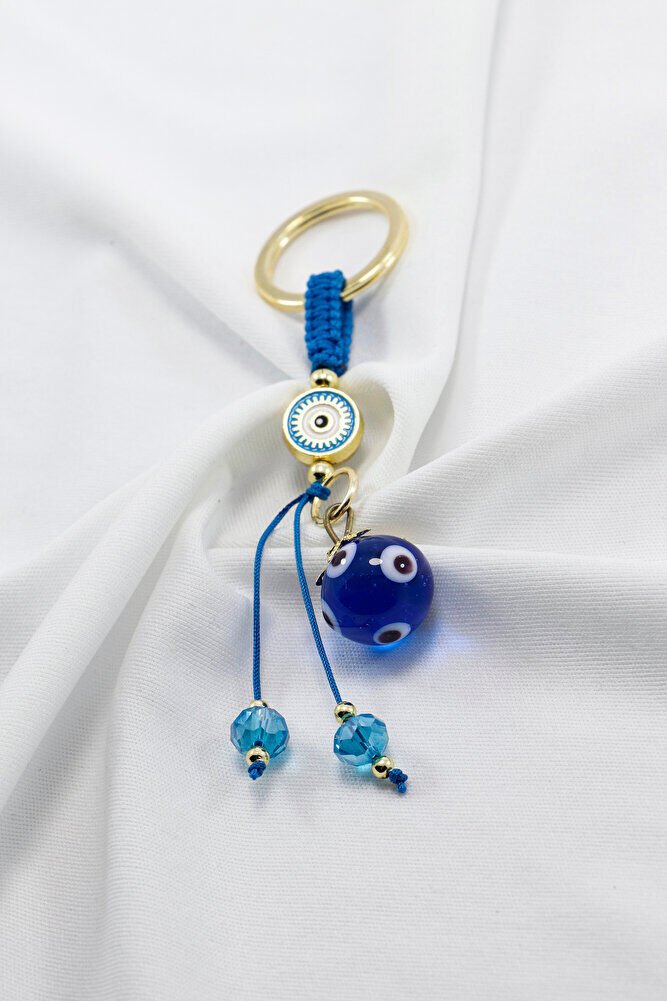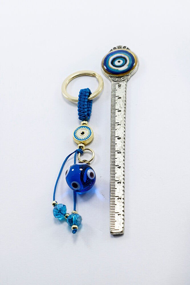 Ürün el yapımıdır. El yapımı olduğu için ufak farklılık ve düzensizlikler olasıdır. Günlük kullanım için dayanıklı ve hafif yapıya sahip olan bu anahtarlık, anahtarlarınızı düzenli tutarken aynı zamanda estetik bir aksesuar olarak da öne çıkar. Nazar boncuğu, kültürel olarak korunma ve iyi dileklerle ilişkilendirilen bir sembol olup, tasarıma zarif bir anlam katmaktadır.