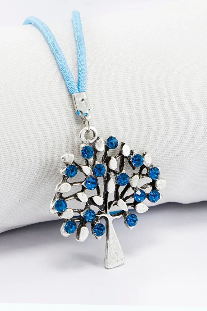 El Yapımı Eskitme Turkuaz Parlak Taşlı Ağaç Figürlü Araba Dikiz Ayna Süsü, Yeni Araba Hediyesi