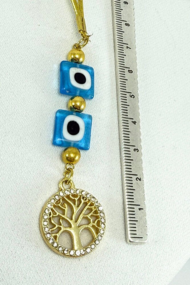 Mavi Nazar boncukları el yapımı camdır.; Çift taraflıdır.; ; Parlak taş çerçeveli yaşam ağacı tek taraflıdır.; ; Ürün el yapımıdır.; ; El yapımı olduğu için ufak farklılık ve düzensizlikler olasıdır.; ; Ip elastiktir, elastik yapısı sayesinde her model araca kolaylıkla takılabilmektedir.; ; Sadece araba süsü gönderilecektir.; Görselde olan parçalar boyutu hakkında bilgi vermek için kullanılmıştır.; ; Yaşam Ağacı, genellikle evrenin ve yaşamın kökleriyle olan derin bağlantısını simgeleyen güçlü bir sembol olarak kabul edilir.; Bu sembol, dengeyi, büyümeyi ve sürekli dönüşümü temsil eder; her dalı, farklı yaşam yolculuklarına ve deneyimlere açılan yeni fırsatları işaret edebilir.; Eğer hayatınızda bir yenilik arayışında ve daha derin bir anlayışa adım atmak istiyorsanız, yaşam ağacının anlamı, içsel bir uyum ve güç bulmanızda size ilham verebilir.; Bu sembolü hayatınıza katmak, kişisel gelişim yolculuğunuzda yeni kapılar açabilir.