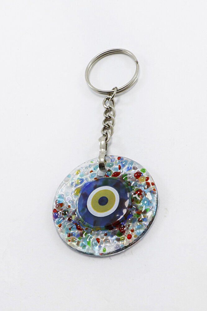 El Yapımı Kırıntılı Cam Nazar Boncuklu Anahtarlık, Hediyelik Çanta Süsü