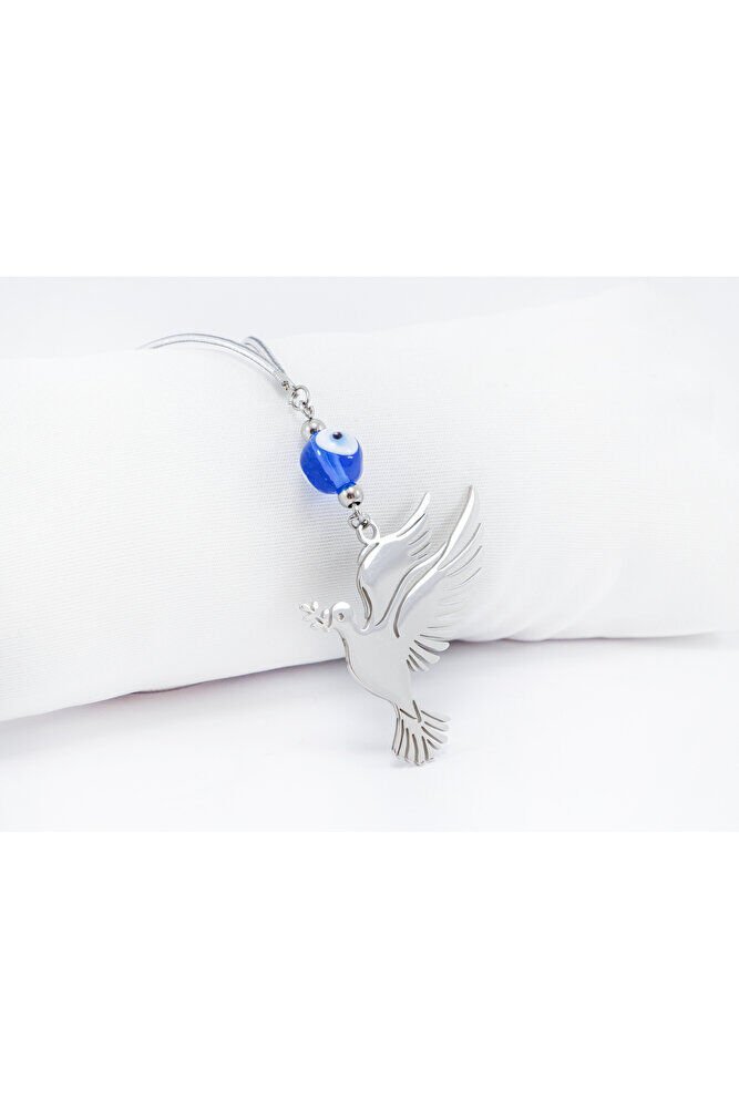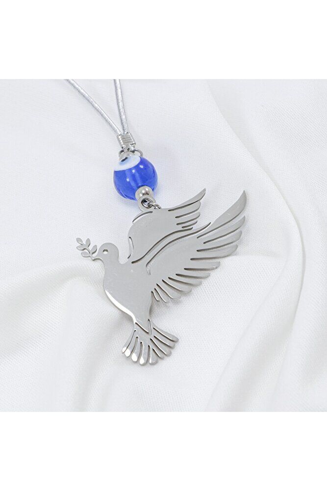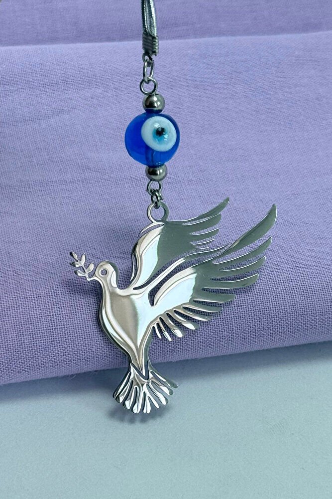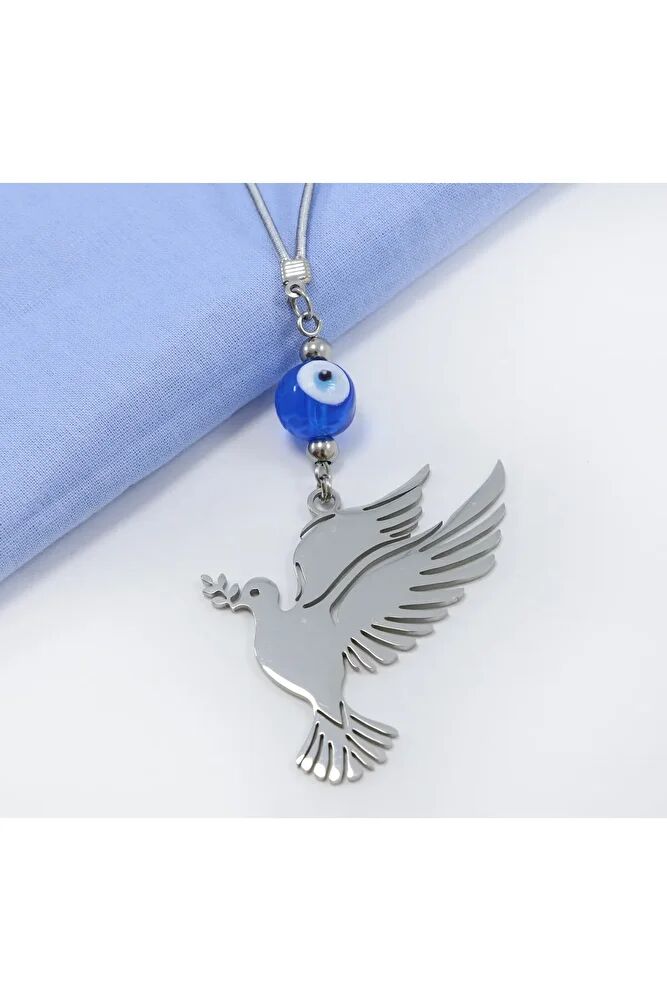 Ürün çift taraflıdır.; Nazar boncuğu el yapımı camdır.; kuş figürü bağlantı halkaları ve tüm mekanizmaları çeliktir.; İpi lastiklidir.; Her model araca rahatlıkla takılabilmektedir.; Dal tutan kuş figürü, birçok kültürel ve sembolik yorumda umut, barış ve yeni başlangıçlarla ilişkilendirilir.; Kabul edilen inanışlara göre; - Kuşun bir dala konması, huzur bulma ve güvenli bir yere ulaşmayı simgeleyebilir, - Yeni bir dönemin başlangıcına işaret ettiği düşünülür, - Umudu, barışı ve içsel dinginliği temsil ettiğine inanılır.; Bazı yorumlara göre bu figür, yaşamda durup nefes alma ve doğru zamanı bekleme çağrısı olarak da kabul edilir.; Anlamı, kişinin kendi yolculuğuna ve bakış açısına göre şekillenebilir.;