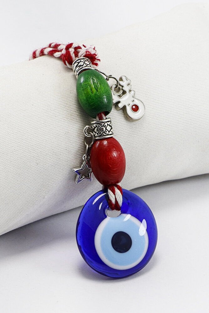 El Yapımı Lacivert Cam Nazar Boncuklu Yılbaşı Figürlü Dikiz Ayna Süsü, Christmas Araç Süsü