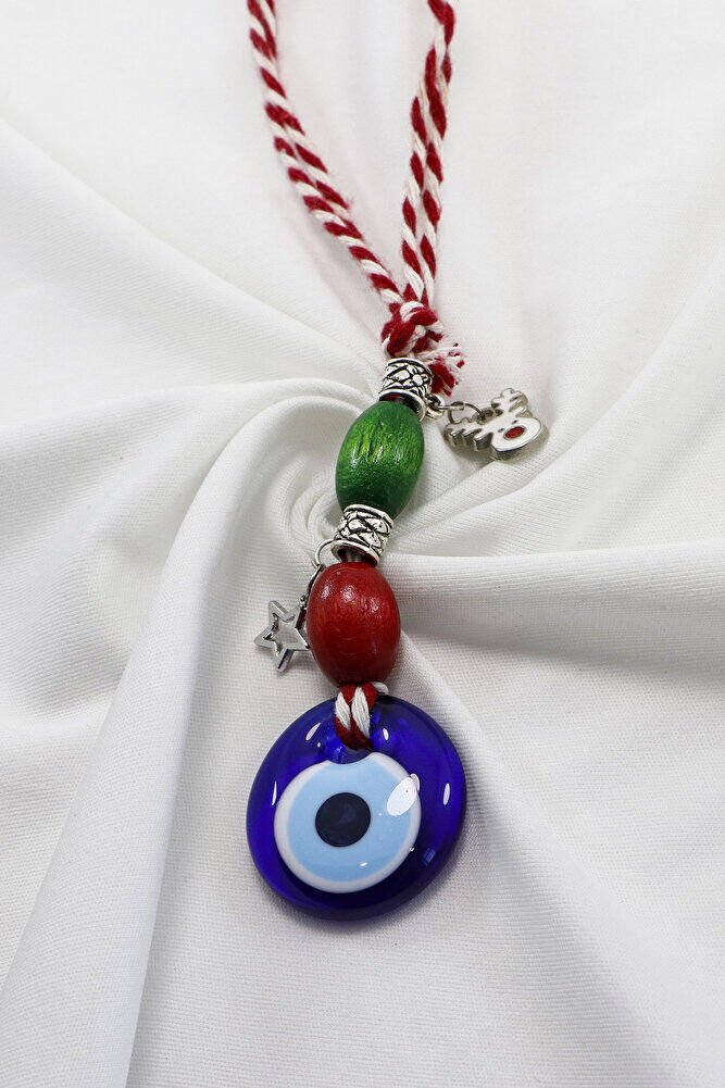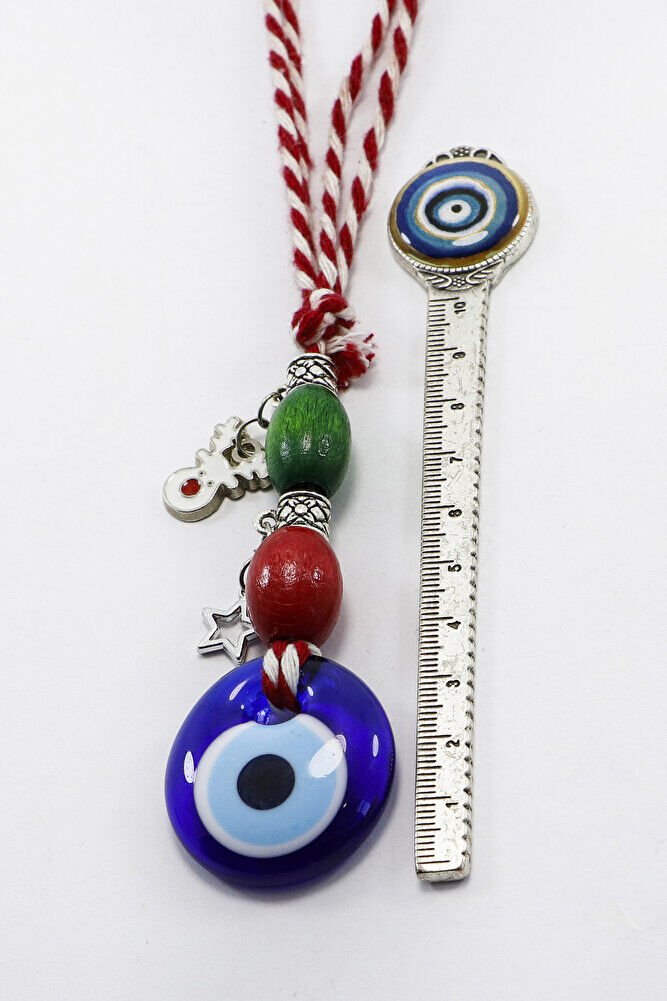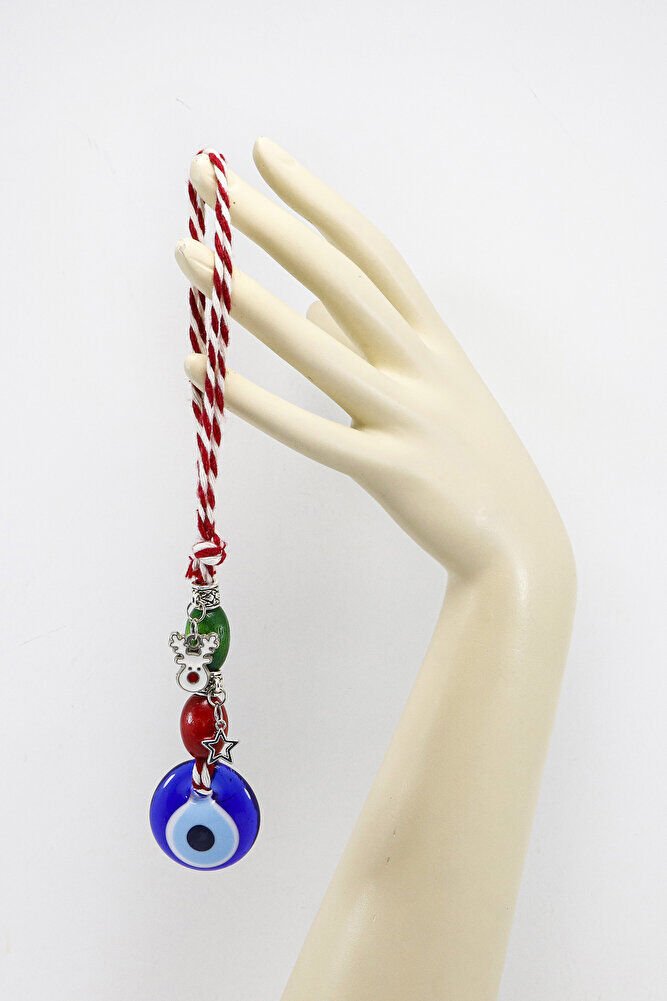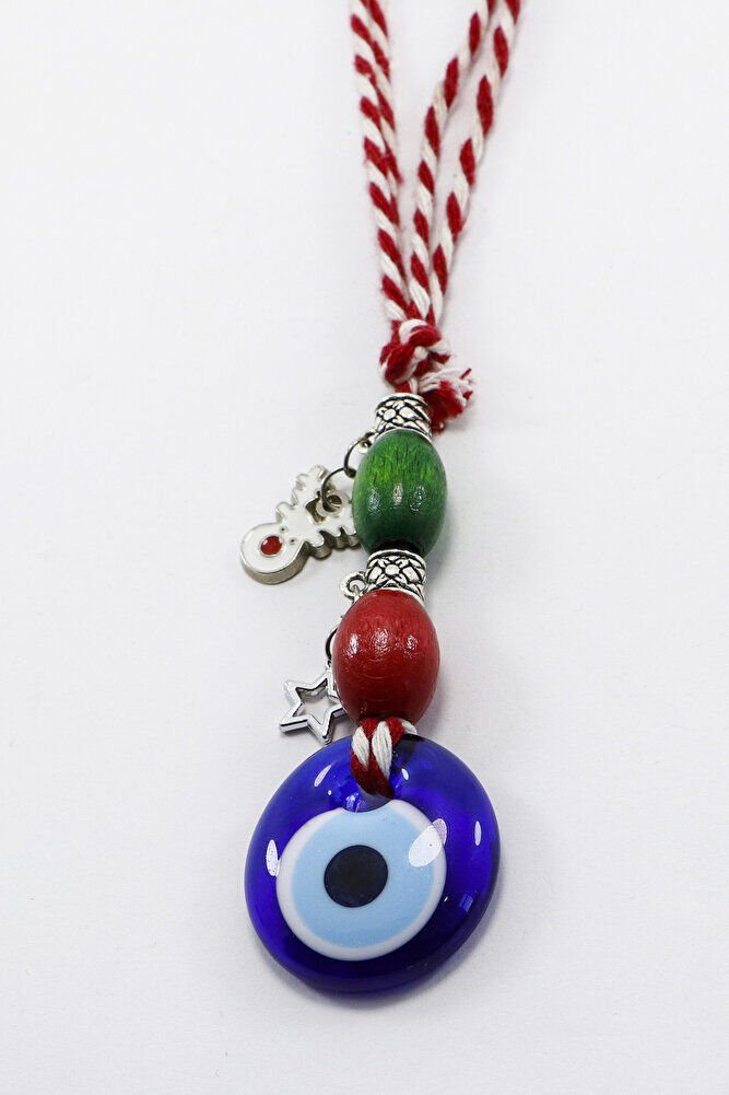 El Yapımı Lacivert Cam Nazar Boncuklu Yılbaşı Figürlü Dikiz Ayna Süsü, yılbaşı temalı detayları ve kırmızı-beyaz renkli ipiyle aracınıza neşeli ve anlamlı bir dokunuş katıyor.; El işçiliğiyle hazırlanmış lacivert cam nazar boncuğu, nazardan korunma inancını yansıtırken; sevimli yılbaşı figürü, yeni yıl ruhunu her yolculuğunuza taşır.; Hem şık bir süs hem de anlamlı bir hediye alternatifi olarak tercih edilebilir.; Görsel temsili olup, figürlerde el işçiliğine bağlı olarak küçük farklılıklar olabilir.