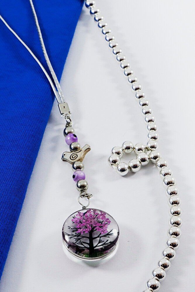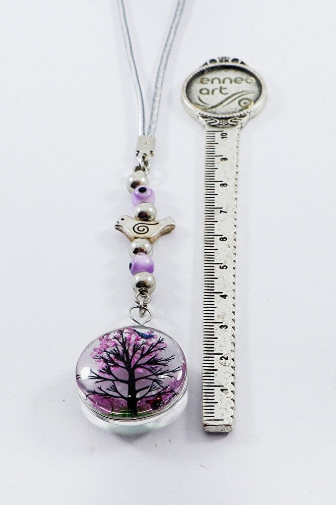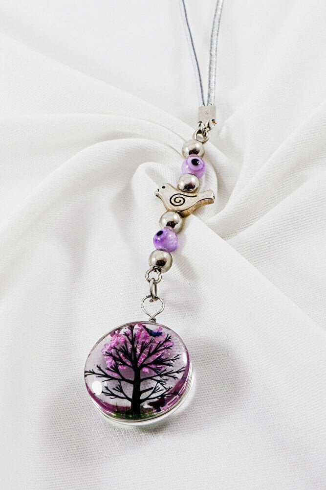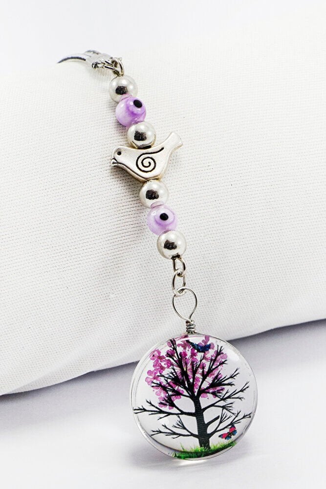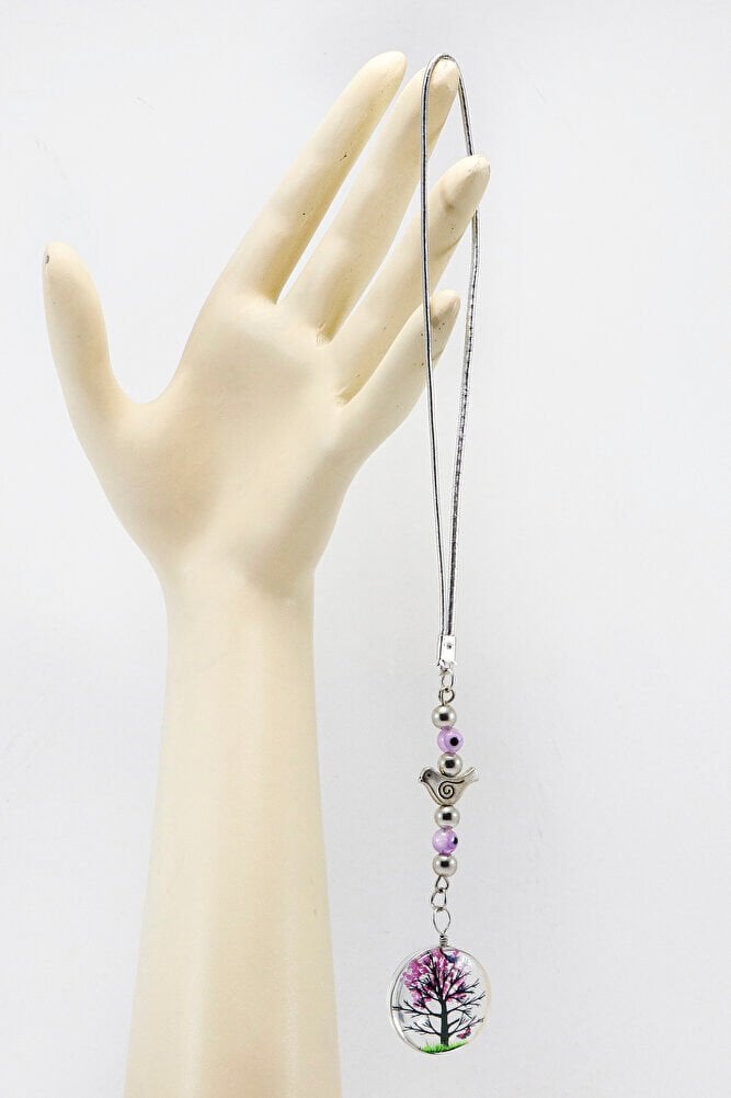 El Yapımı Lila Kuşlu Nazar Boncuklu Yaşayan Manzara Araba Dikiz Ayna Süsü