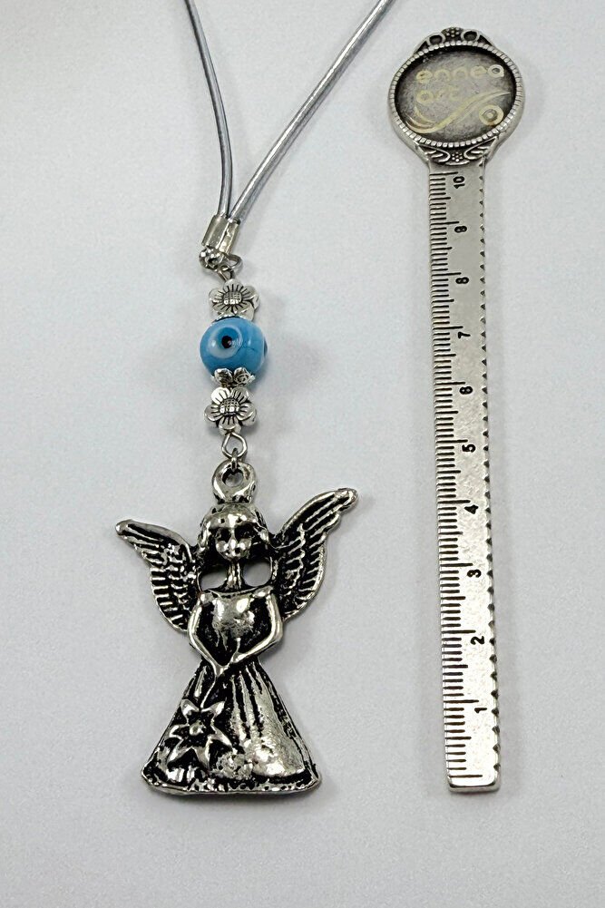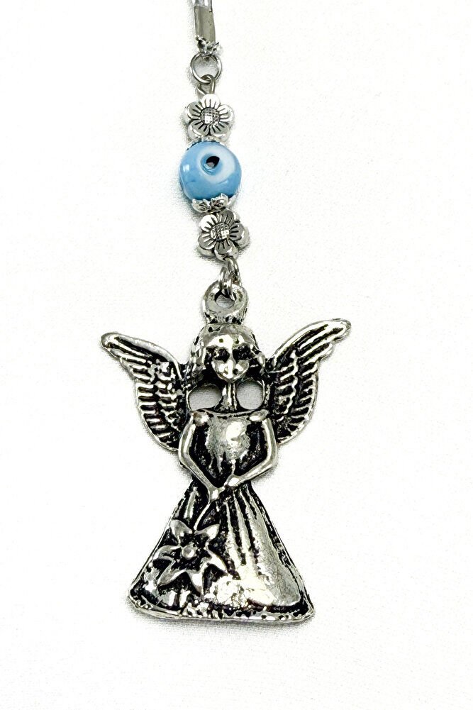 El Yapımı Mavi Cam Boncuklu Metal Kanatlı Melek Araba Dikiz Ayna Süsü