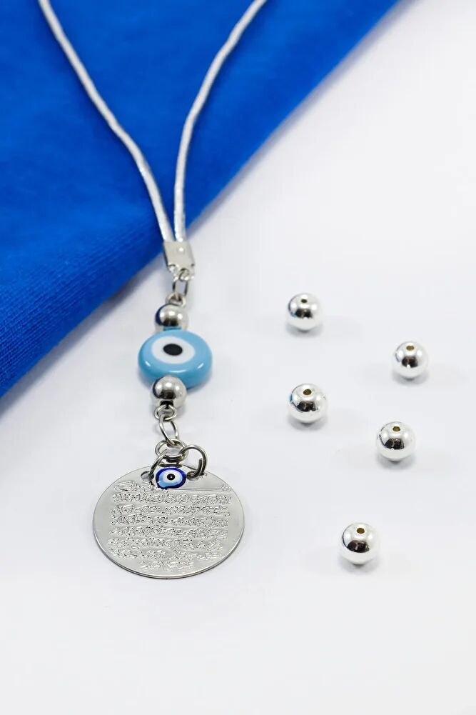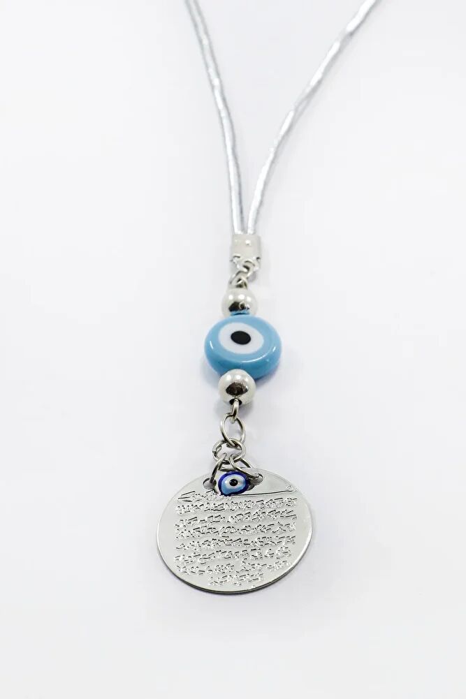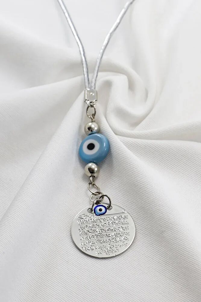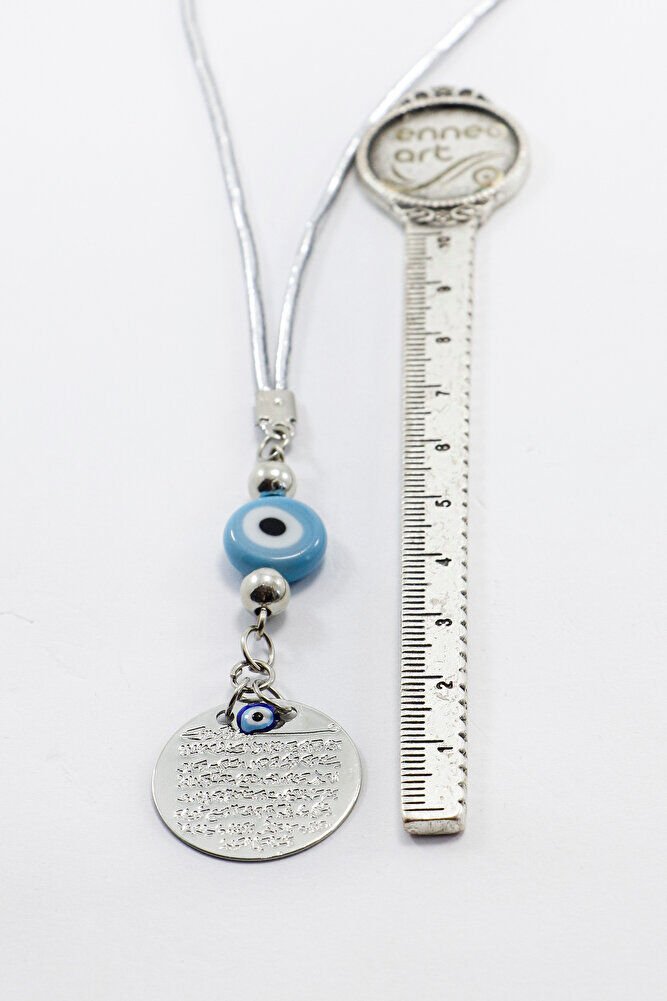El Yapımı Mavi Yassı Nazar Boncuğu Metal Ayetel Kürsi Araba Dikiz Ayna Süsü, Yeni Araba Hediyesi