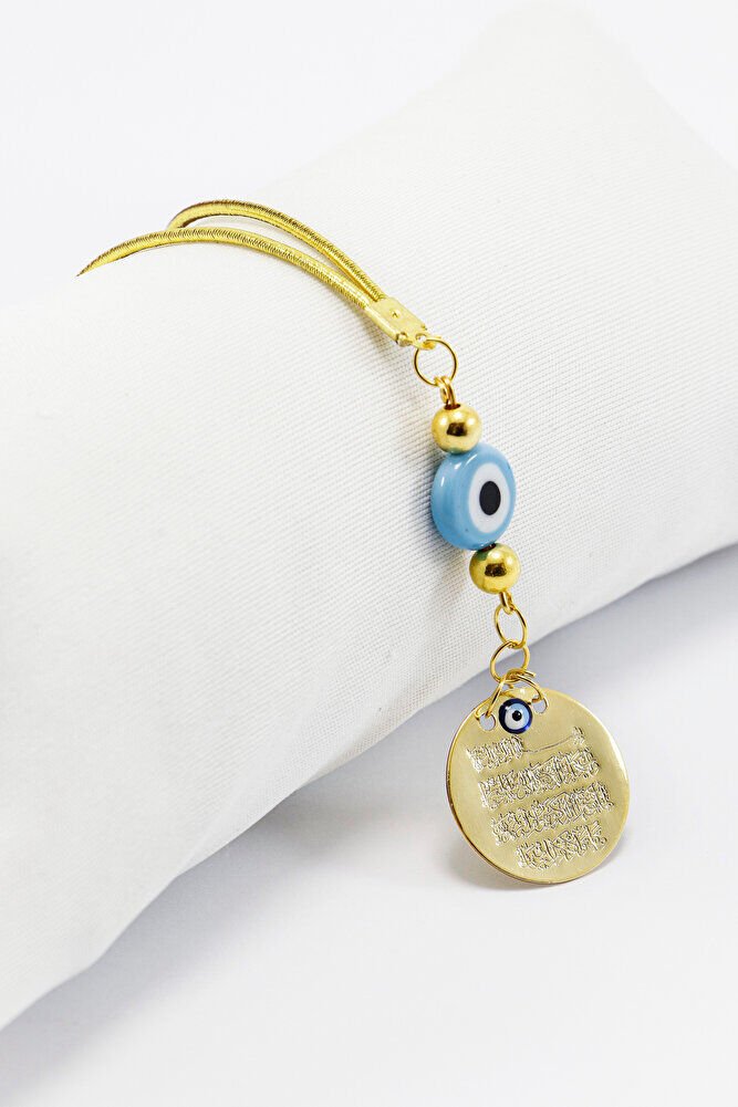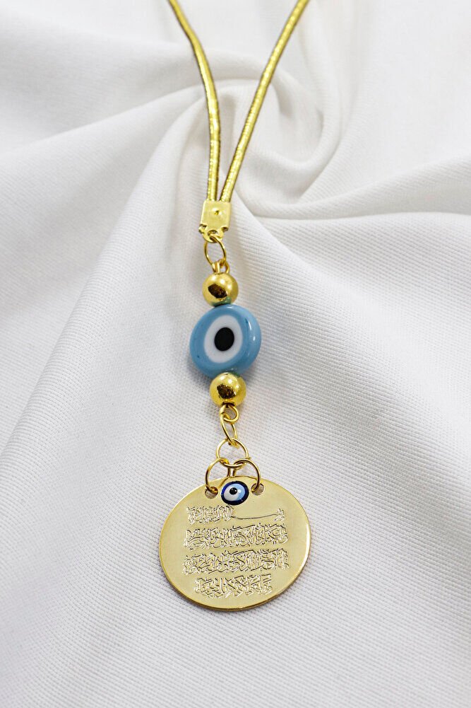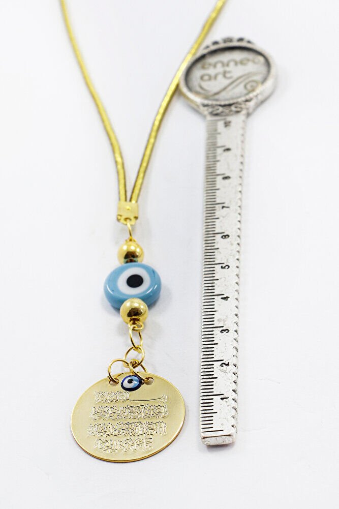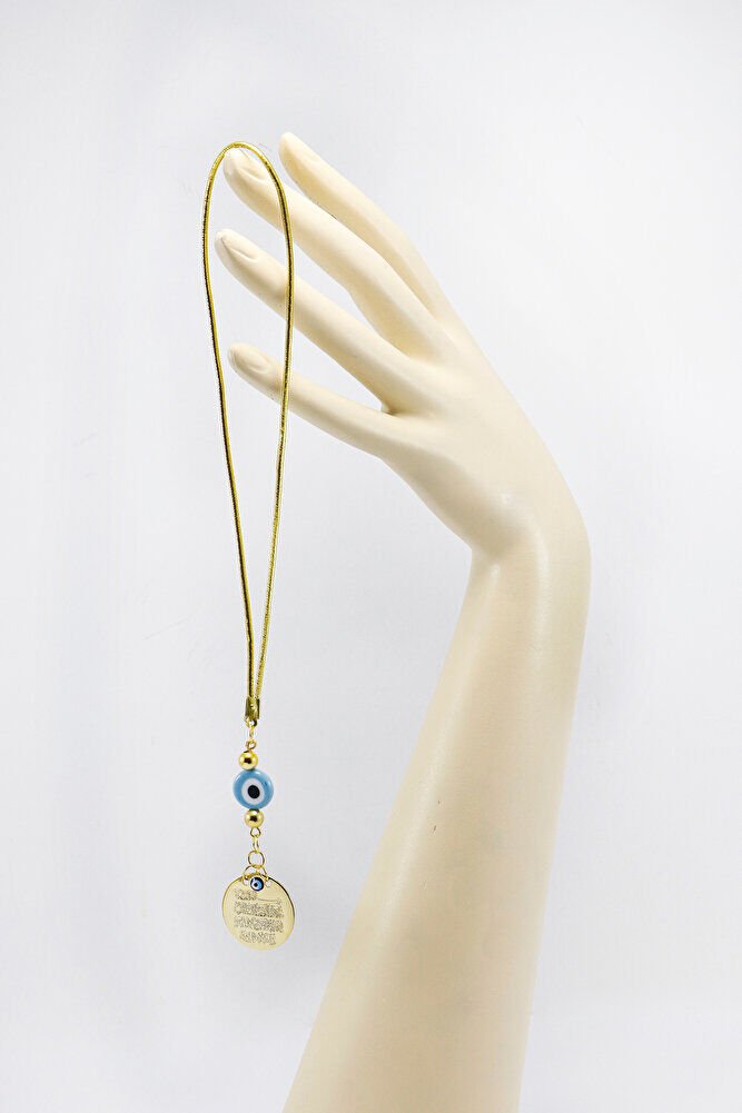 El Yapımı Mavi Yassı Nazar Boncuğu Metal Nazar Ayeti Araba Dikiz Ayna Süsü, Yeni Araba Hediyesi