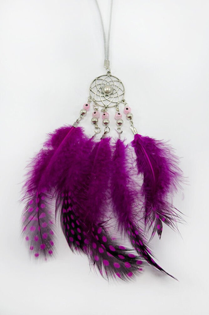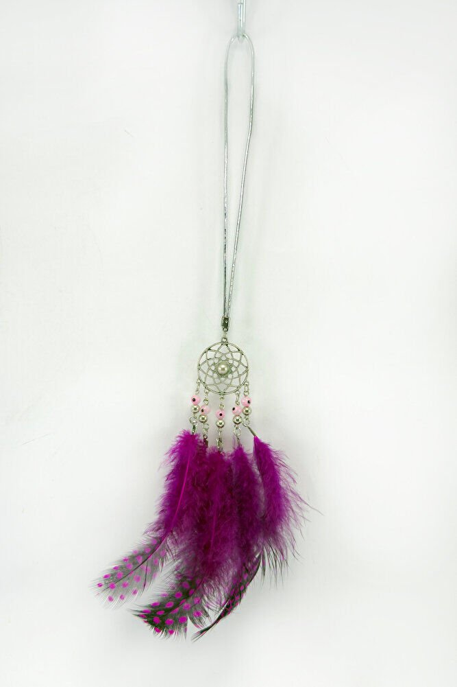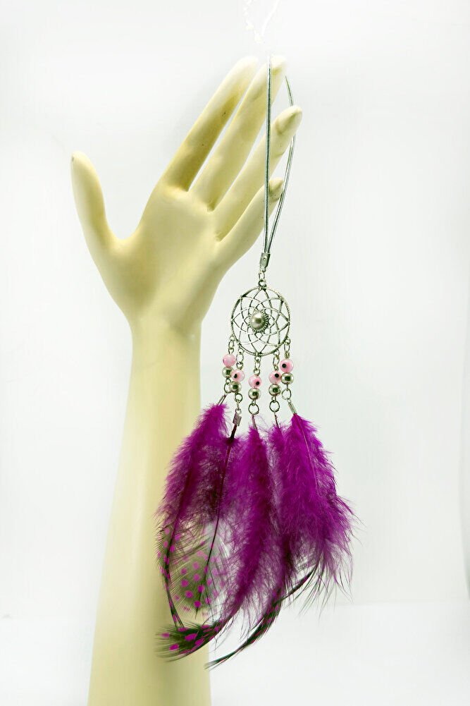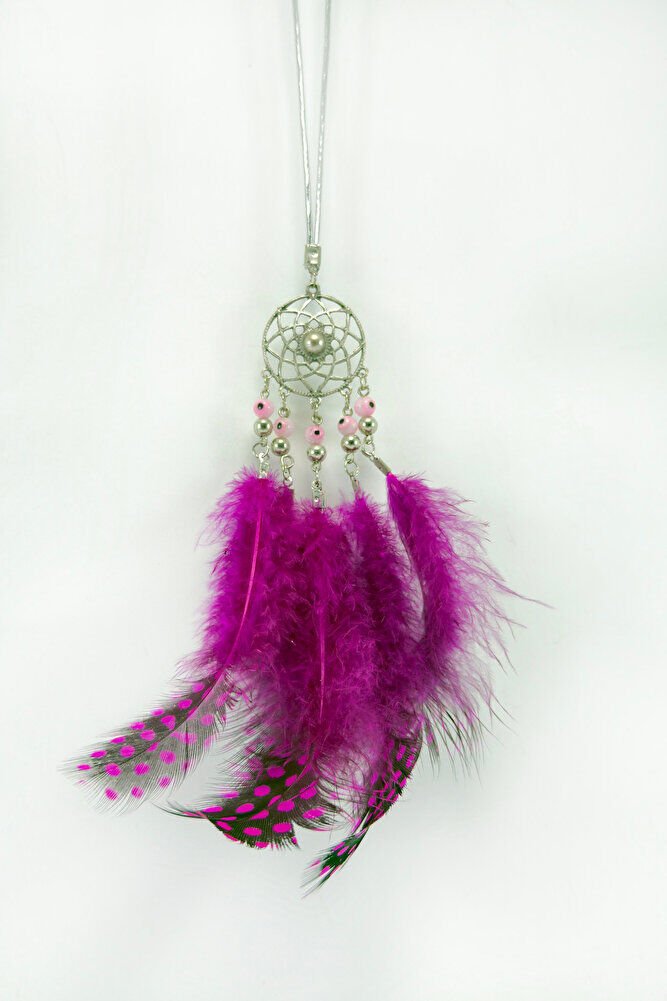 El Yapımı Minik Pembe Cam Boncuklu Düş Kapanı Tüylü Araba Dikiz Ayna Süsü, Yeni Araba Hediyesi