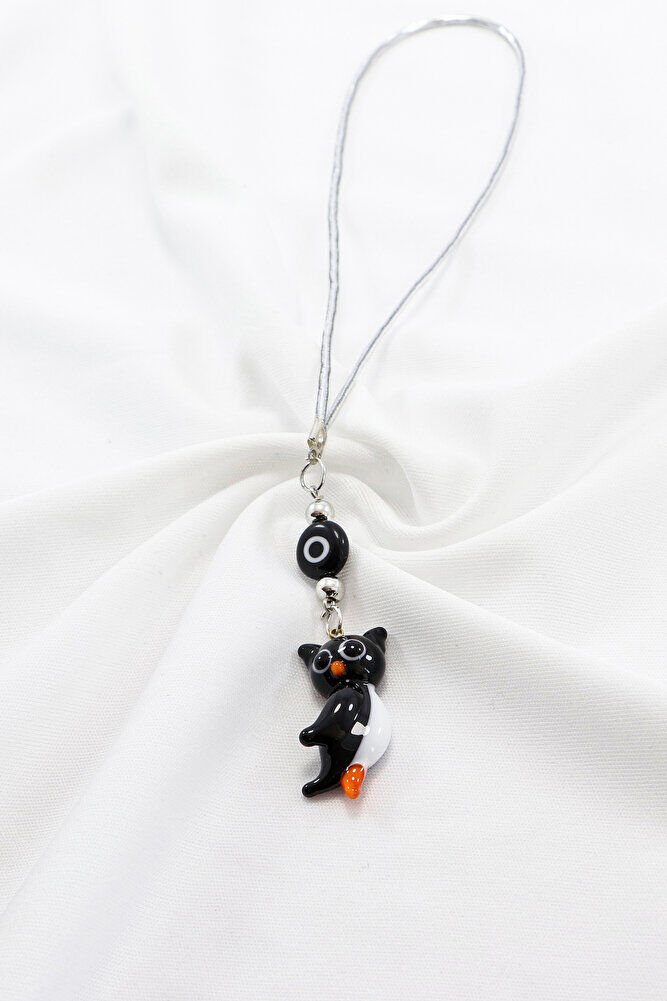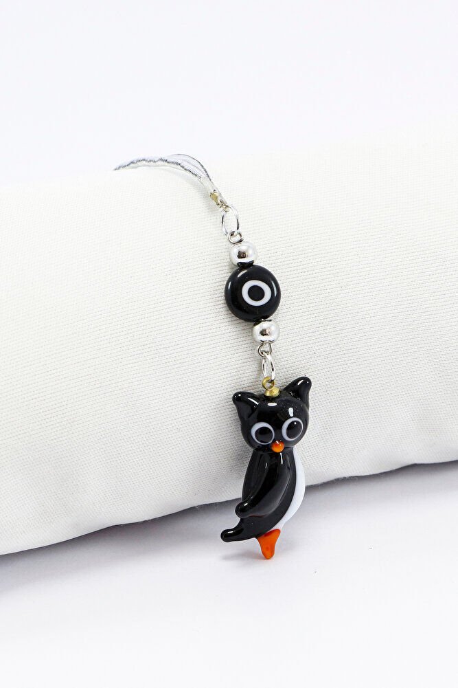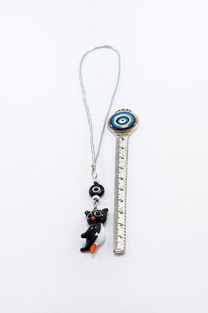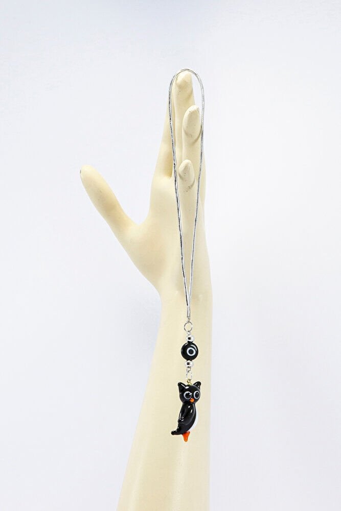 El Yapımı Murano Cam Siyah Baykuş Araba Dikiz Ayna Süsü, Siyah Beyaz cam Nazar Boncuklu
