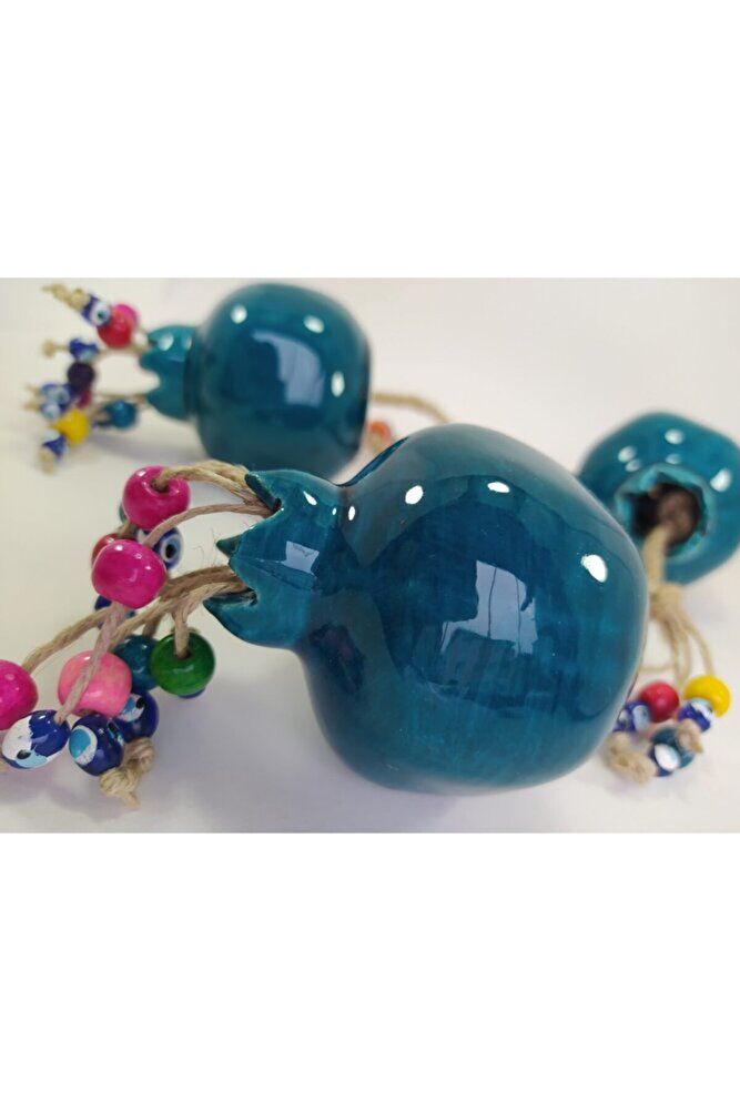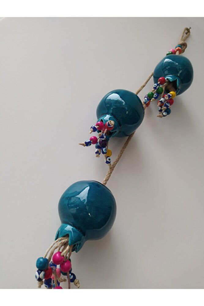 El Yapımı Seramik Üçlü Turkuaz Nar Nazar Boncuğu Duvar Süsü