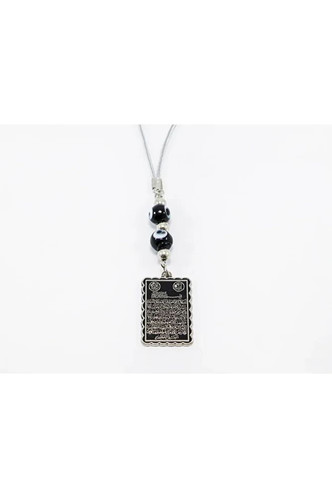 Ürün el yapımıdır.; El Yapımı olduğu için ufak farklılık ve değişiklikler bulunmaktadır.; İpi lastiklidir.; Latikli olduğu için her model araca rahatlıkla takılabilmektedir.; Ürün metaldir.; Tek taraflıdır.; Siyah nazar boncukları el yapımı camdır.; Ayetel Kürsi, Kur’an-ı Kerim’in Bakara Suresi’nde yer alan ve çeşitli inançlara göre güçlü anlamlar taşıdığı kabul edilen bir ayettir.; Yaygın inanışlara göre; - Koruyucu bir etkisi olduğuna, özellikle gece okunmasının huzur verdiğine, - Allah’ın kudretini ve birliğini vurguladığına, - Manevi olarak kişinin iç huzurunu artırabileceğine inanılır.; Bu anlamlar, bireylerin inanç düzeyine ve dini yorumlarına göre farklılık gösterebilir.;