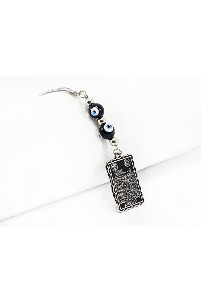 El Yapımı Siyah Cam Nazar Boncuklu Ayetel Kürsi Araba Dikiz Ayna Süsü, Yeni Araba Hediyesi