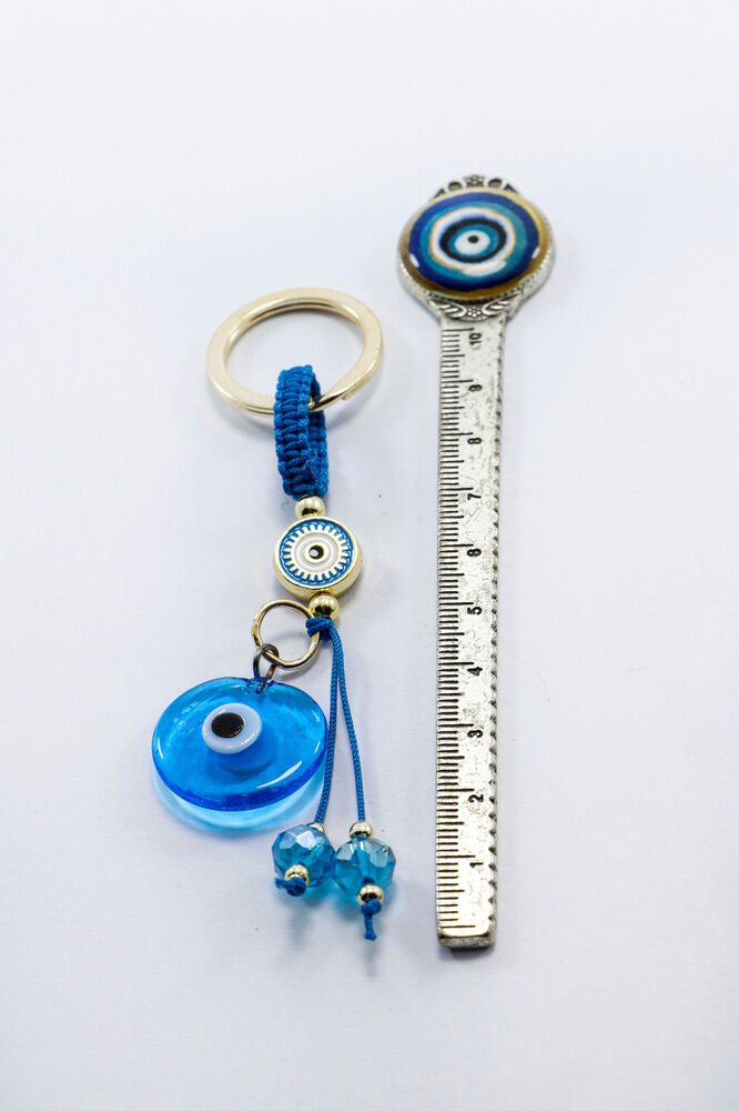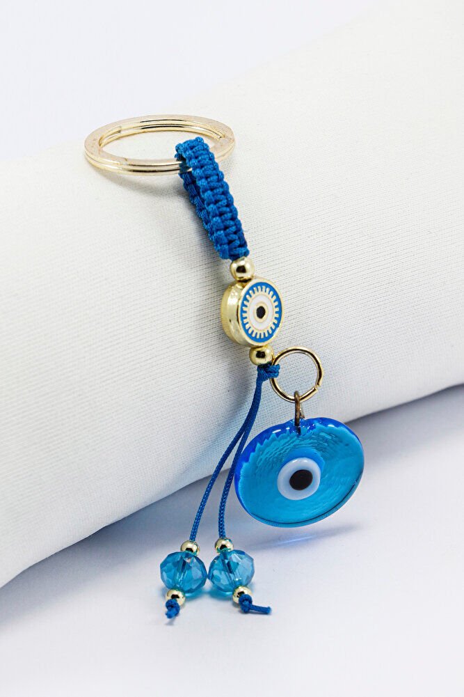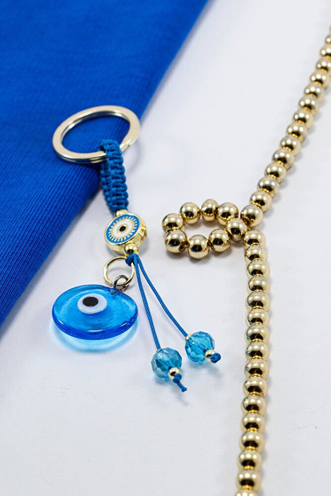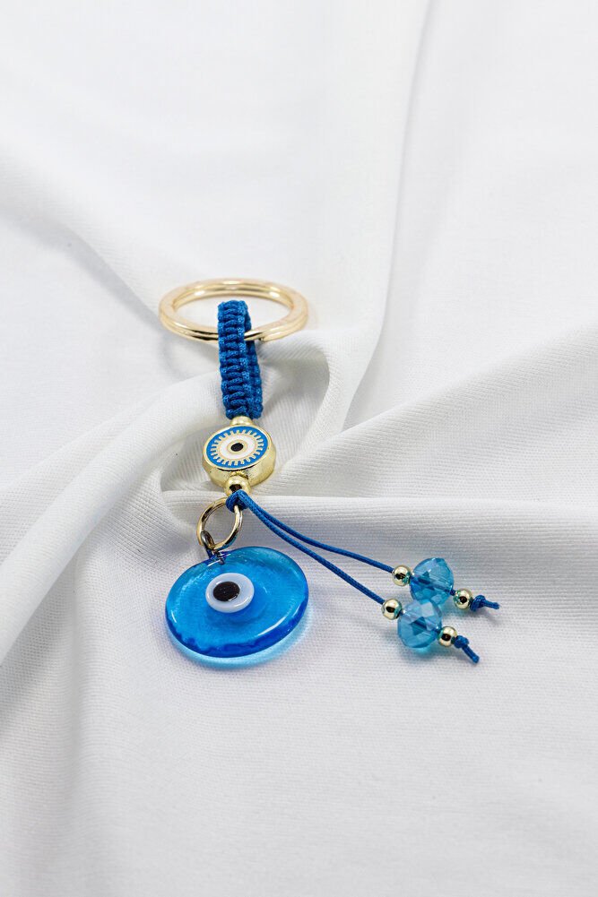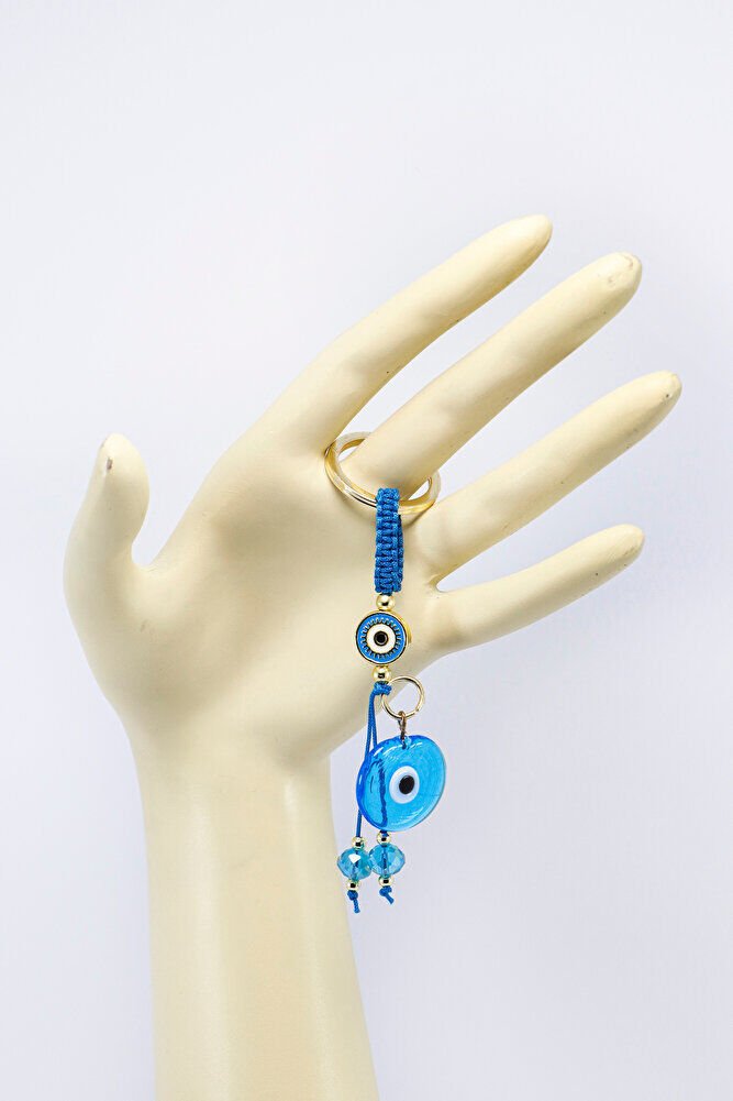 Ürün el yapımıdır. El yapımı olduğu için ufak farklılık ve düzensizlikler olasıdır. Günlük kullanım için dayanıklı ve hafif yapıya sahip olan bu anahtarlık, anahtarlarınızı düzenli tutarken aynı zamanda estetik bir aksesuar olarak da öne çıkar. Nazar boncuğu, kültürel olarak korunma ve iyi dileklerle ilişkilendirilen bir sembol olup, tasarıma zarif bir anlam katmaktadır.