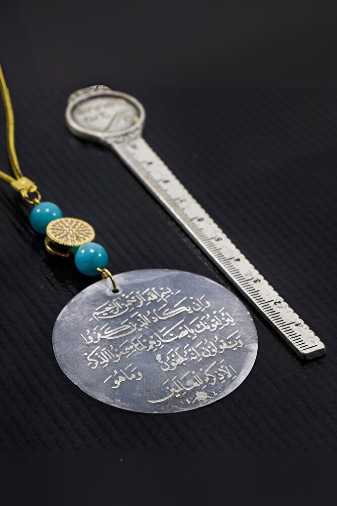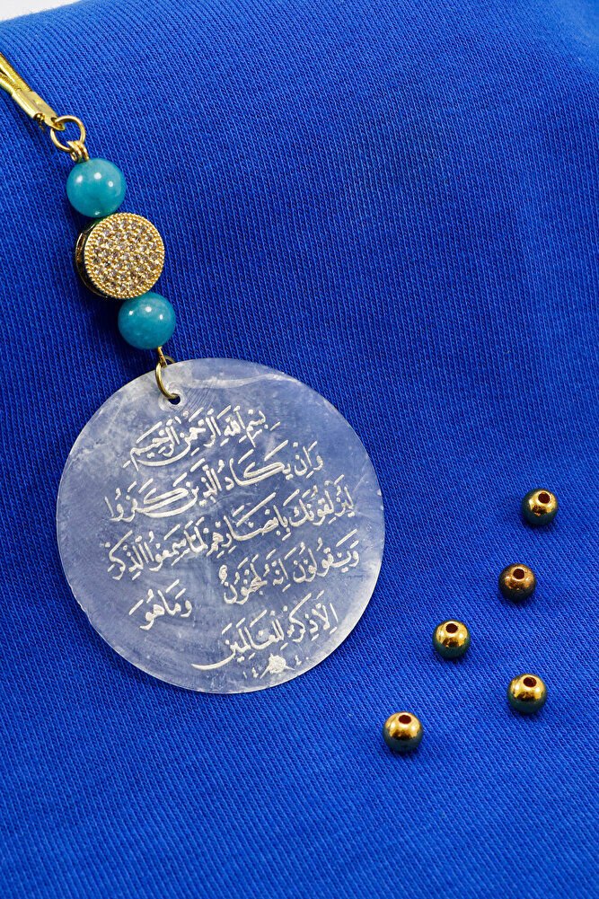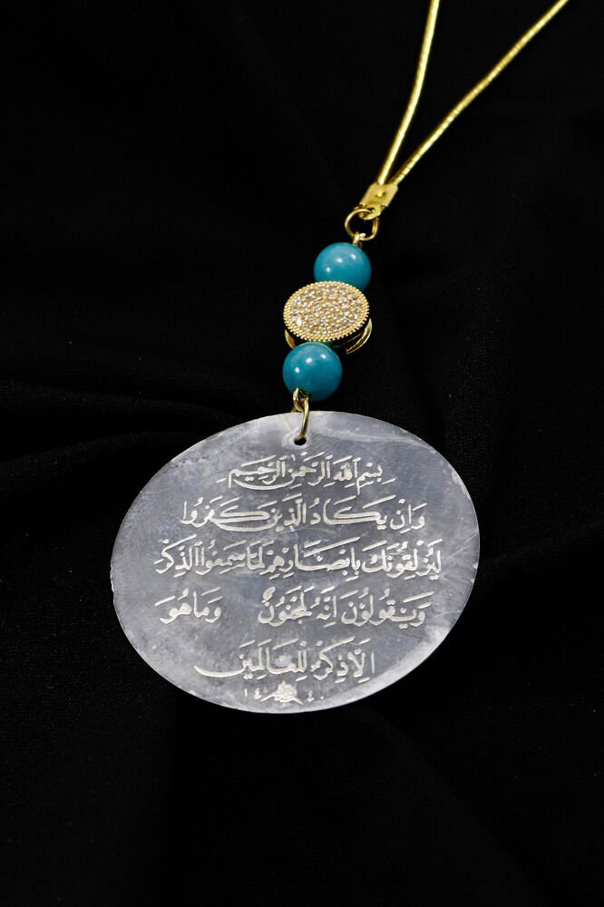 El Yapımı Turkuaz Doğal Taşlı Parlak Taşlı Lazer Kazıma Nazar Ayeti Araba Dikiz Ayna Süsü