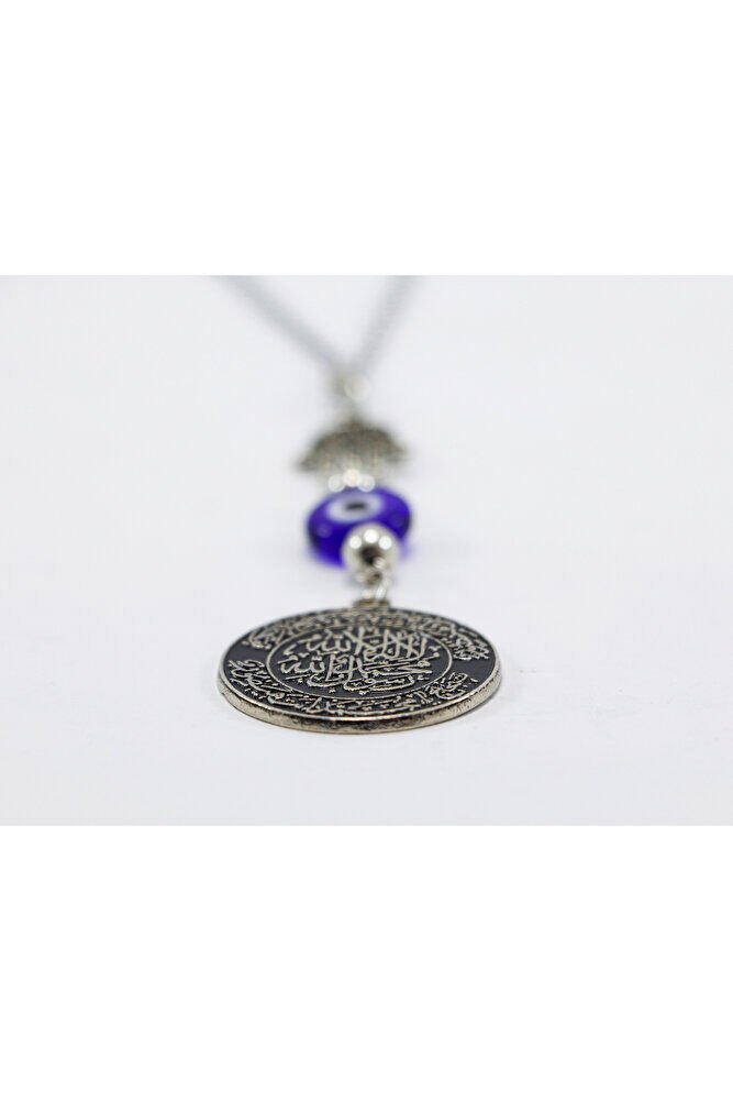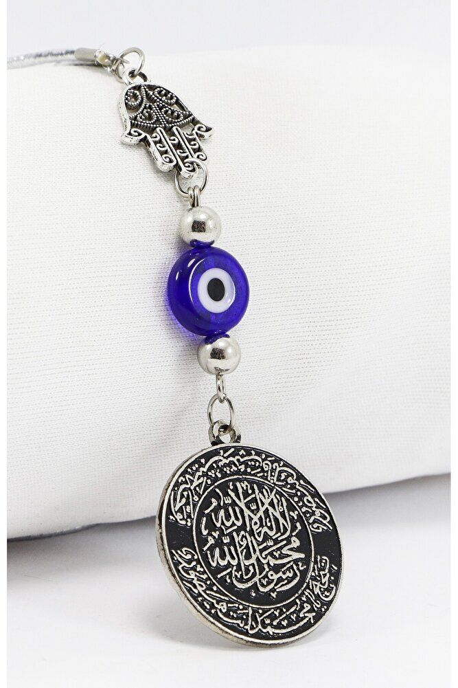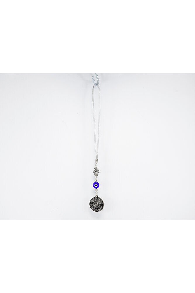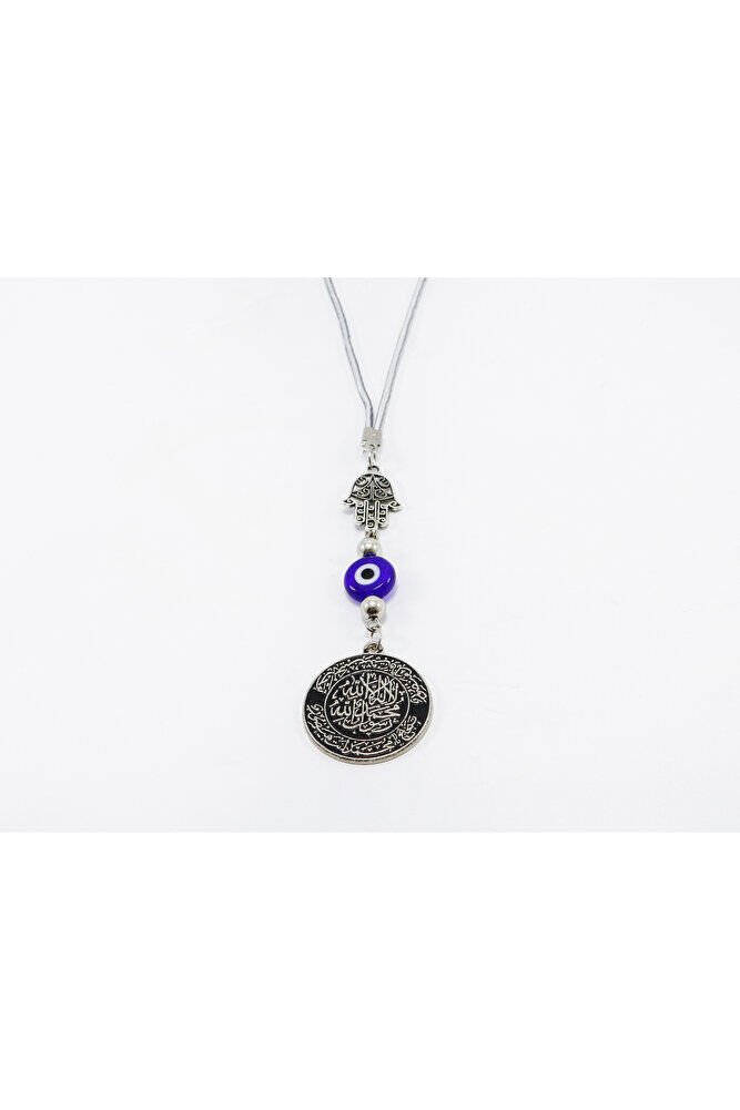 Ürün el yapımıdır.; El Yapımı olduğu için ufak farklılık ve değişiklikler bulunmaktadır.; İpi lastiklidir.; Latikli olduğu için her model araca rahatlıkla takılabilmektedir.; Ürün metaldir.; Tek taraflıdır.; Yassı nazar boncuğu el yapımı camdır.; Ürün üzerinde yazan dua Mührü Şeriftir.; Mührü ŞerifTirmizi rivayet ediyor ki: Her kim bu mührü şerife abdestli olarak sabah baksa, akşama kadar ayın evvelinden baksa sonuna kadar, yola çıkarken baksa dönünceye kadar geçen zaman hayırlı ve bereketli olur.;