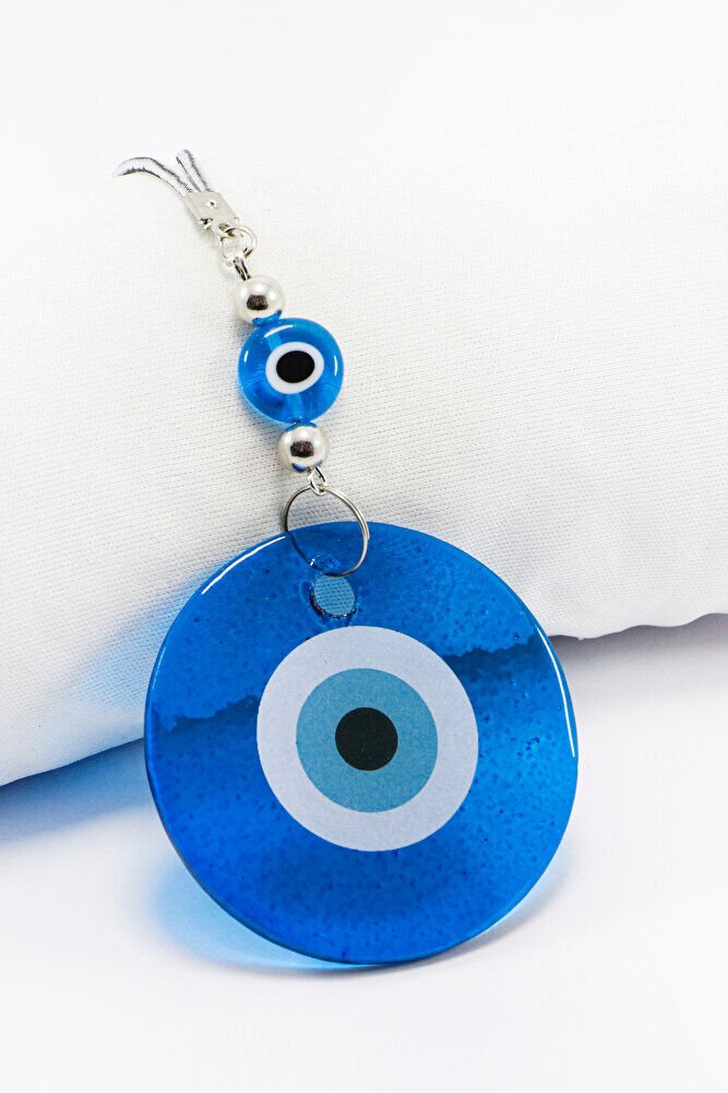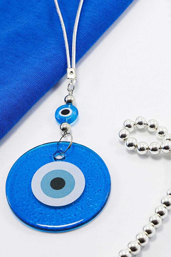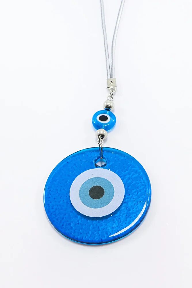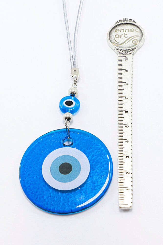 El Yapımı Yassı Cam Nazar Boncuklu Lacivert Cam Nazarlı Araba Dikiz Ayna Süsü, Yeni Araba Hediyesi
