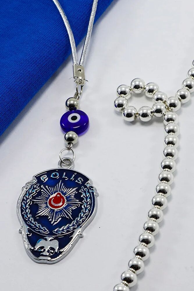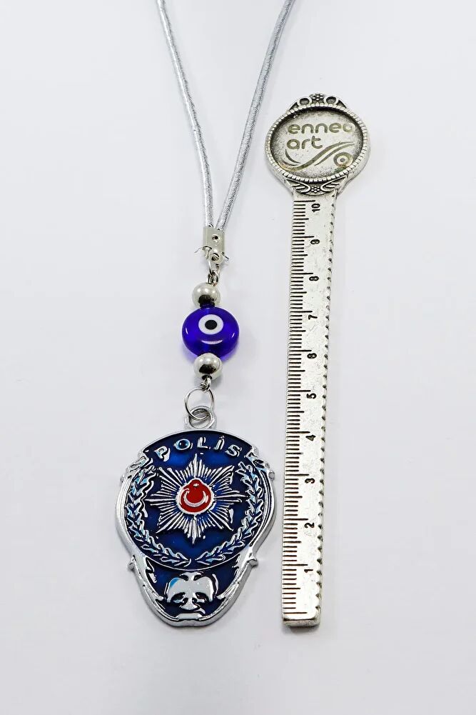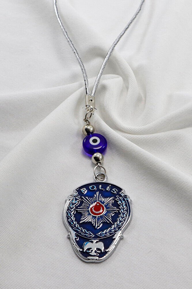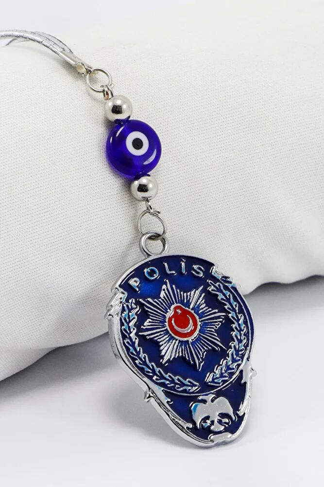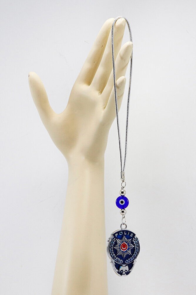 El Yapımı Yassı Cam Nazar Boncuklu Lacivert Polis Rozeti Araba Dikiz Ayna Süsü, Yeni Araba Hediyesi